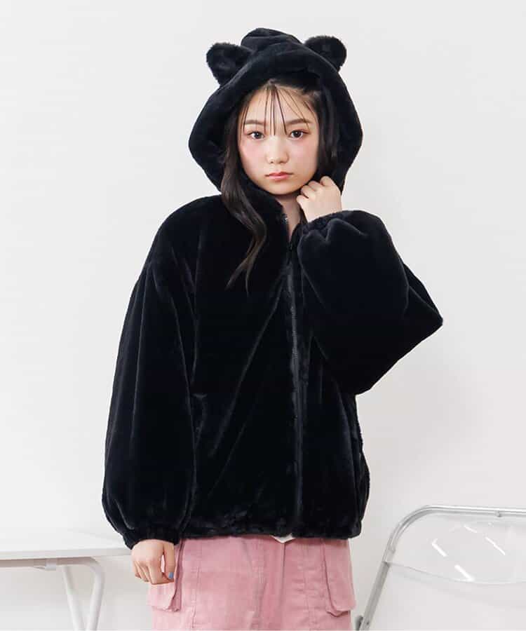 algy(アルジー)のジャケット・ブルゾン「ネコミミBIGエコファーアウター」。