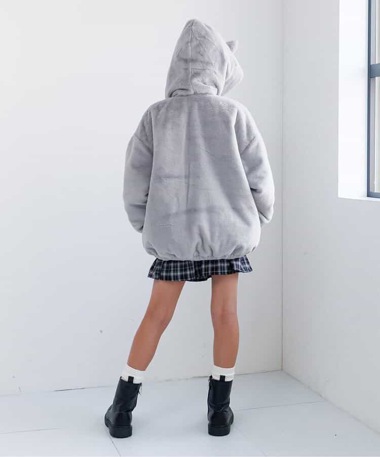 algy(アルジー)のジャケット・ブルゾン「ネコミミBIGエコファーアウター」。