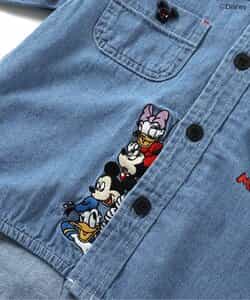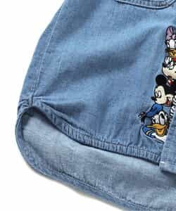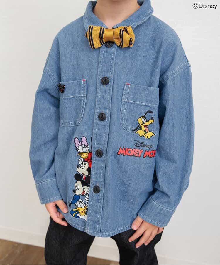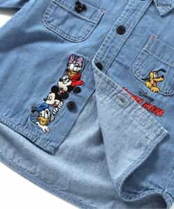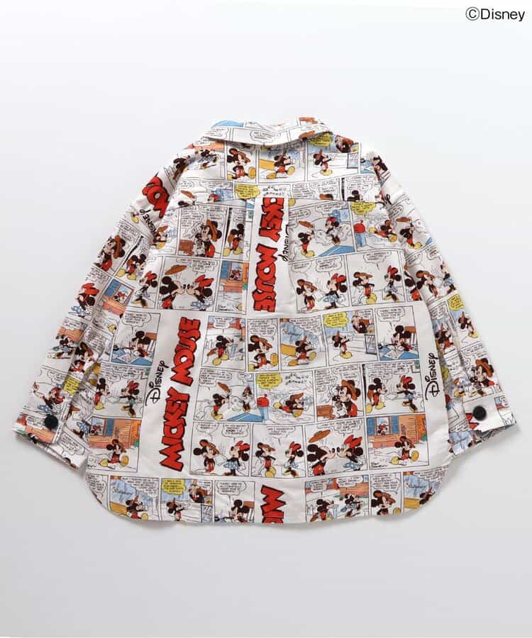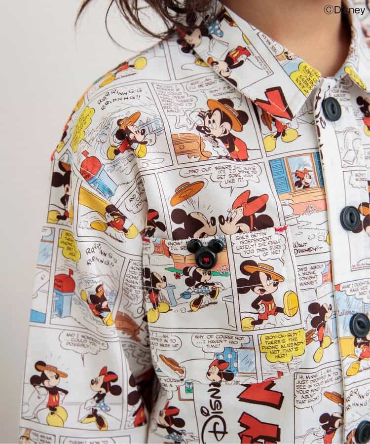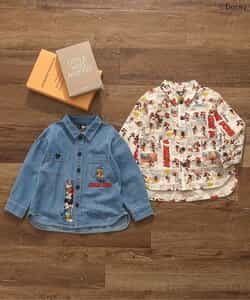 【DISNEY】フォーマルとしても、普段のおでかけ着としても使えるシャツはこだわりの2色展開◎フロントのボタン部分に注目!ディズニーキャラクターたちが並んで勢ぞろい!のデニムカラー。コミック風のデザインが目を惹く総柄デザインのアイボリーカラー。きれいめなコーデの中に、ディズニーキャラクターのかわいいデザインをプラスして遊び心あるコーデに♪