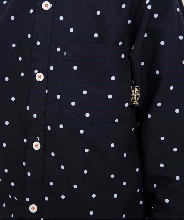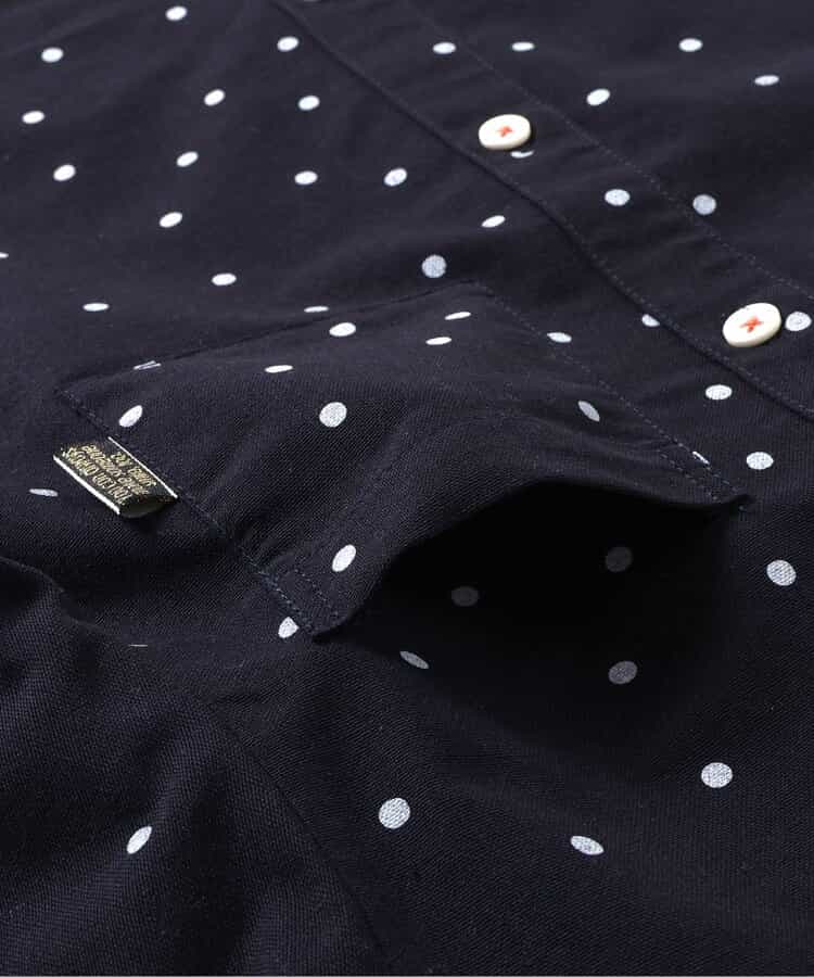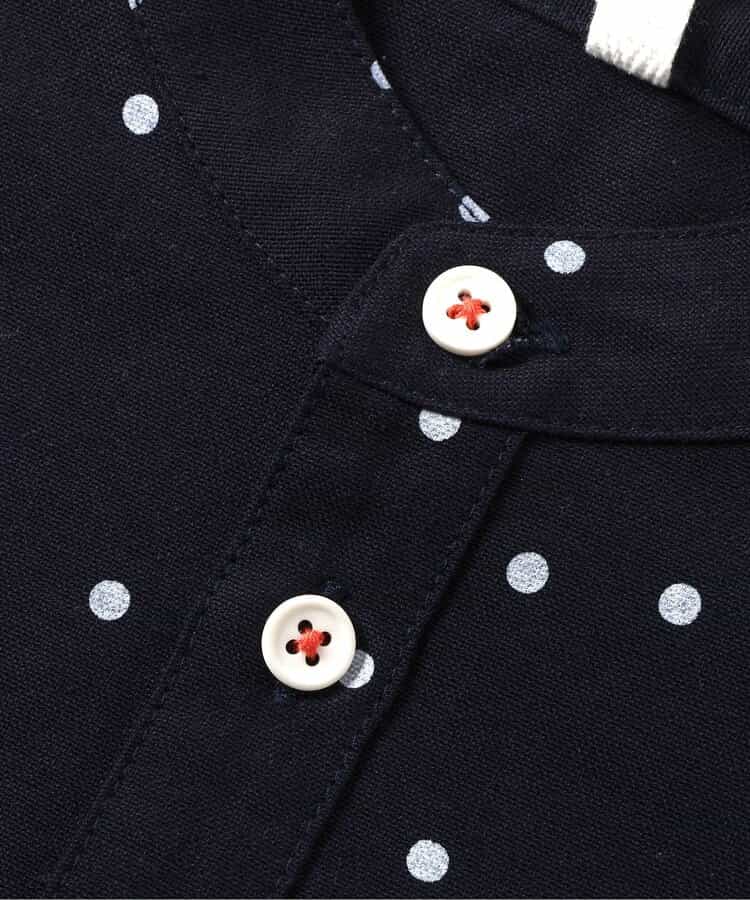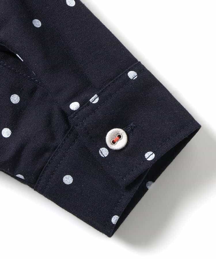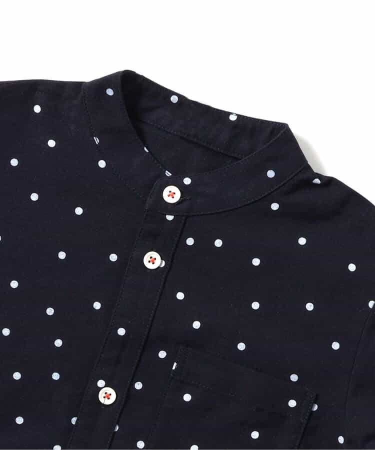 万能に使えるシャツはシンプルなライトグレーとドットの2色展開。