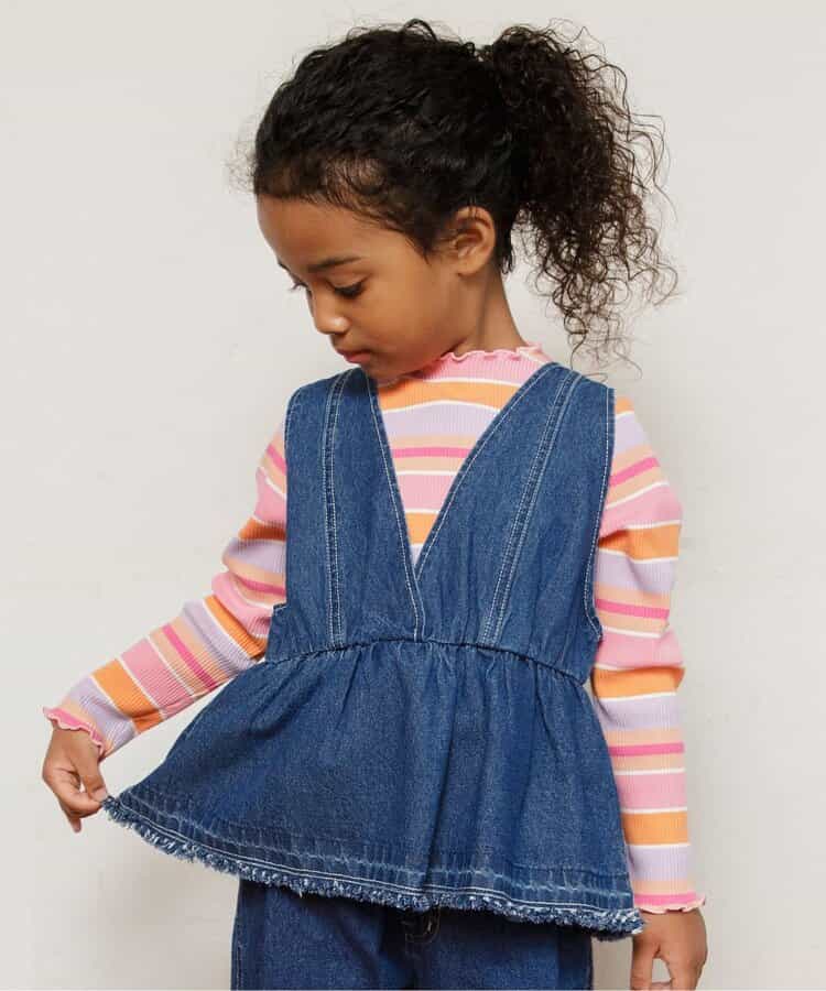 BREEZE(ブリーズ)のベスト・ジレ「デニムフリンジベスト」は、手頃な価格とアメカジテイストを取り入れた大人顔負けのデザインが人気!これ一枚でいつものコーディネートがワンランクUP!