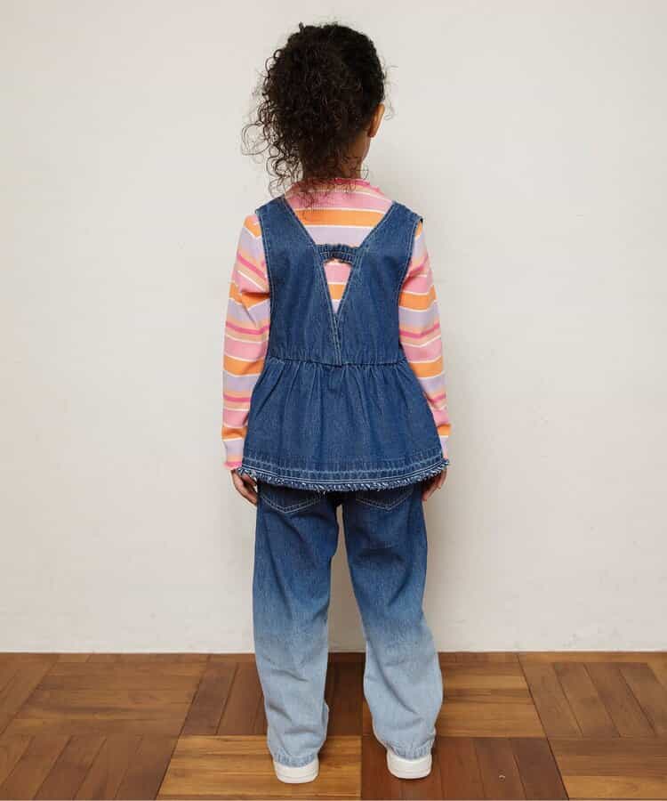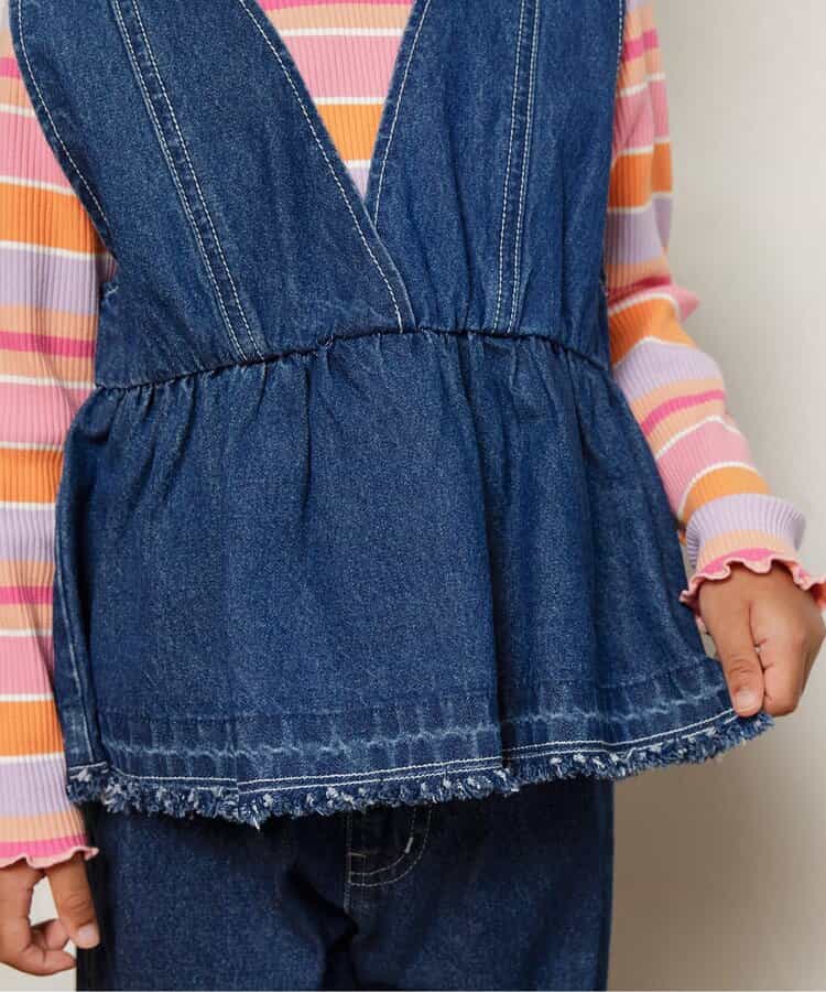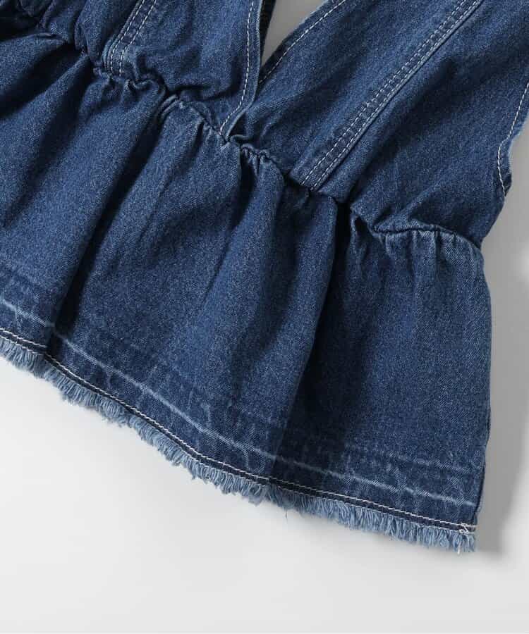 BREEZE(ブリーズ)のベスト・ジレ「デニムフリンジベスト」は、手頃な価格とアメカジテイストを取り入れた大人顔負けのデザインが人気!これ一枚でいつものコーディネートがワンランクUP!