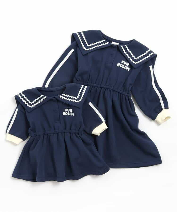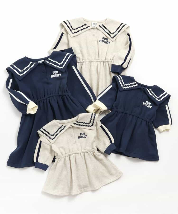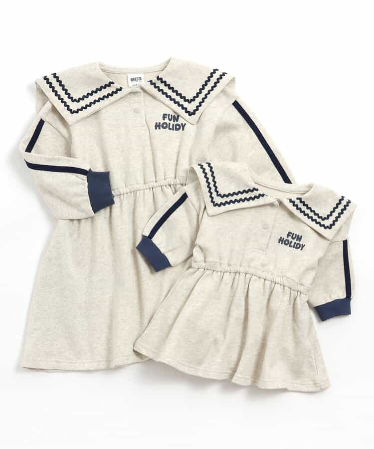 【12/23(火)21:00~販売】BREEZE(ブリーズ)のワンピース「【リンク】セーラー裏毛ワンピ」は、お出かけにも普段使いにも着まわせるデザインが人気!色や柄、シルエットでかわいさを引き出します♪