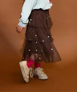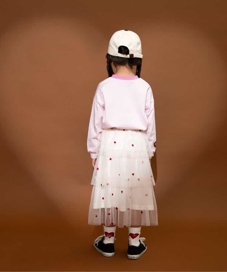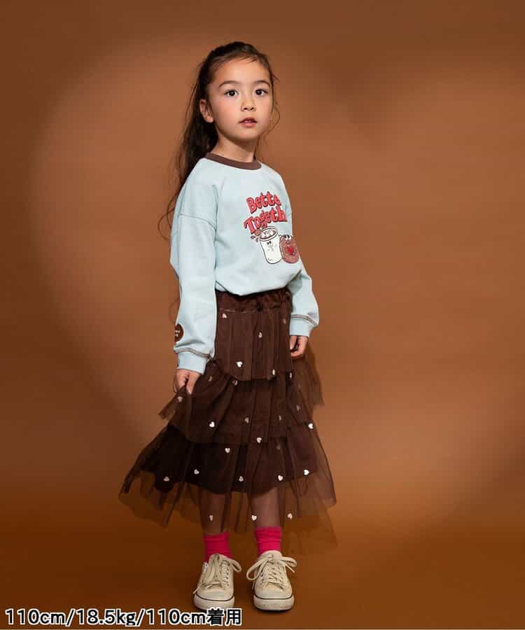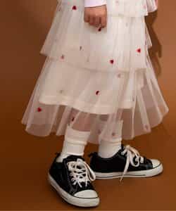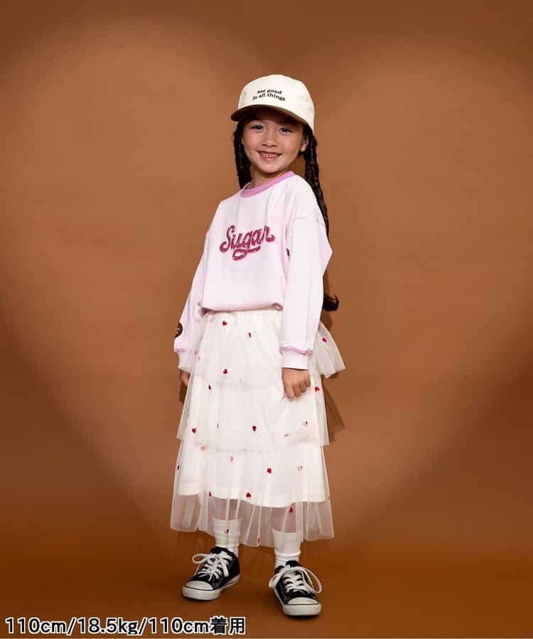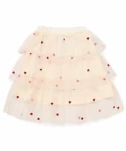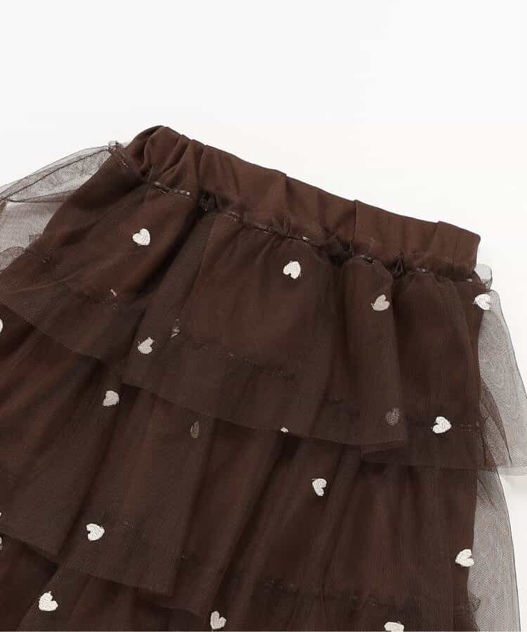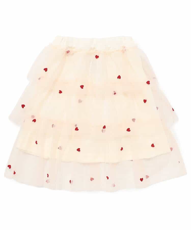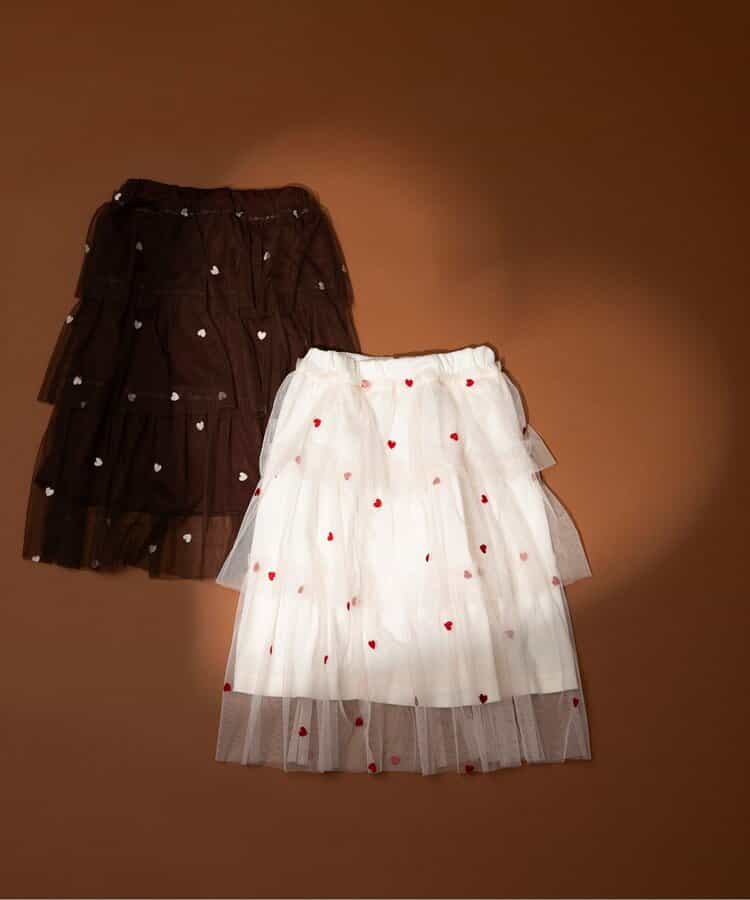 【1/16(金)21:00~販売】BREEZE(ブリーズ)のスカート「ハート総柄刺繍チュールスカート」は、お出かけにも普段使いにも着まわせるデザインが人気!色や柄、シルエットでかわいさを引き出します♪<お取り扱いのご注意>この商品は着用中の摩擦や洗濯により毛羽の乱れ、毛羽脱落、毛玉が生じることが有ります。できるだけ美しくご利用頂く為に次のことにご留意下さい。○毛玉は毛玉取り器またはハサミで丁寧にカットして下さい。○毛羽が他に付着した際はテープやブラシで除去して下さい。○他の製品とは洗わず、単独でお洗濯して下さい。○タンブル乾燥はお避け下さい。