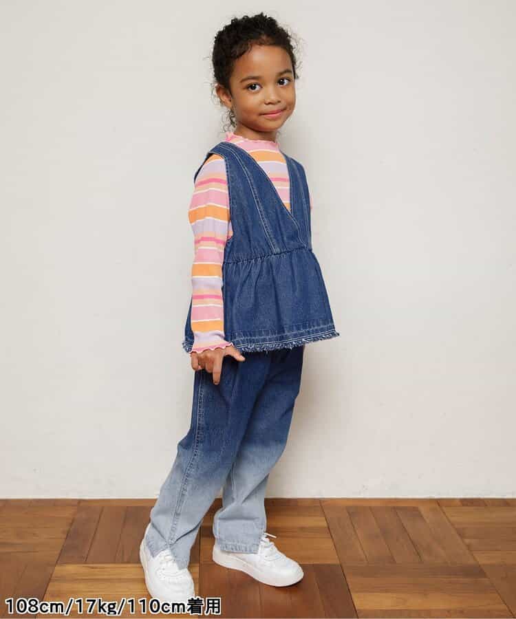 BREEZE(ブリーズ)のパンツ「切替デニムパンツ」は、通園・通学にもおすすめな、おしゃれで動きやすいデザインが人気!<お取り扱いのご注意> この商品はユーズド感を出す為、製品洗い・製品染め・ブリーチ(脱色)・生地切れ・糸切れ等の2次加工を施しております。製品の特性上1枚ずつの加工となり、多少の歪み・シワ・色の出方・風合い・サイズ等1枚ごとに微妙に違います。着用や洗濯を繰り返すことにより加工が徐々に進行し、あたり・ほつれなどが表れます。以上の点をご留意の上、他の製品では味わえない雰囲気をお楽しみ下さい。