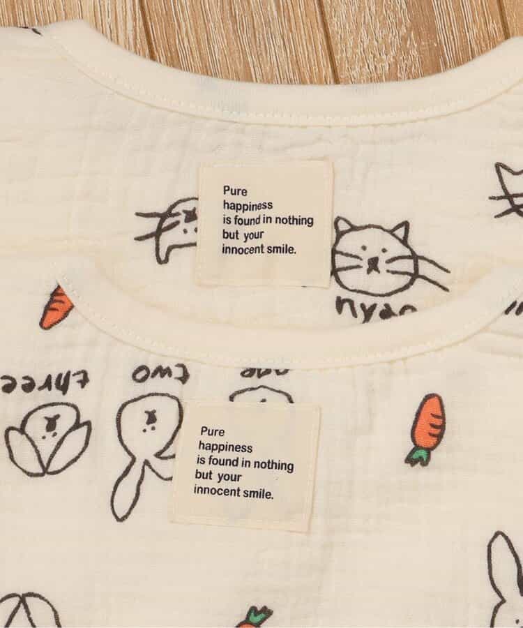 BREEZE(ブリーズ)の胴着・ベスト「ねこ・うさぎガーゼスリーパー」は、手頃な価格とアメカジテイストを取り入れた大人顔負けのデザインが人気!