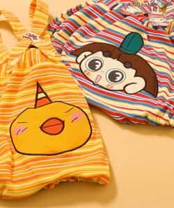 【1/19(月)お昼12時~発売予定】 【おじゃる丸×BREEZE】アニメ『おじゃる丸』とのコラボアイテムが登場! 後ろのデザインに注目!ポップなボーダーデザインにおじゃる丸、キスケのお顔♪ おじゃる丸には電ボ、キスケにはアオべエとアカネのタグがちらり・・!【おじゃる丸】ボディオールと合わせたコーデもおすすめ◎【おじゃる丸×BREEZE】アイテム一覧はこちら >>