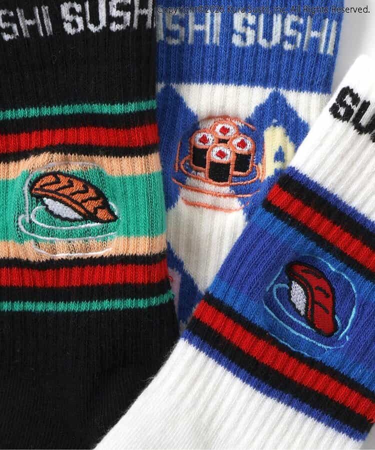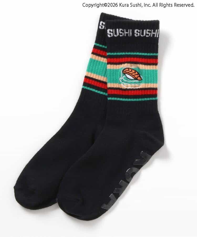 【2/6(金)お昼12時~発売予定】 【くら寿司×BREEZE】 「安心を着よう。安心を食べよう。」をテーマに特別なアイテムが登場! ソックスのカラーの組み合わせと、お寿司のワンポイントデザインに注目♪ 「SUSHI」「KURA」の文字もさりげなくかわいい◎ みんなはどの柄がお気に入り・・・?♪ おそろいも、ちょっとしたプレゼントにもおすすめです♪【くら寿司×BREEZE】アイテム一覧はこちら >>