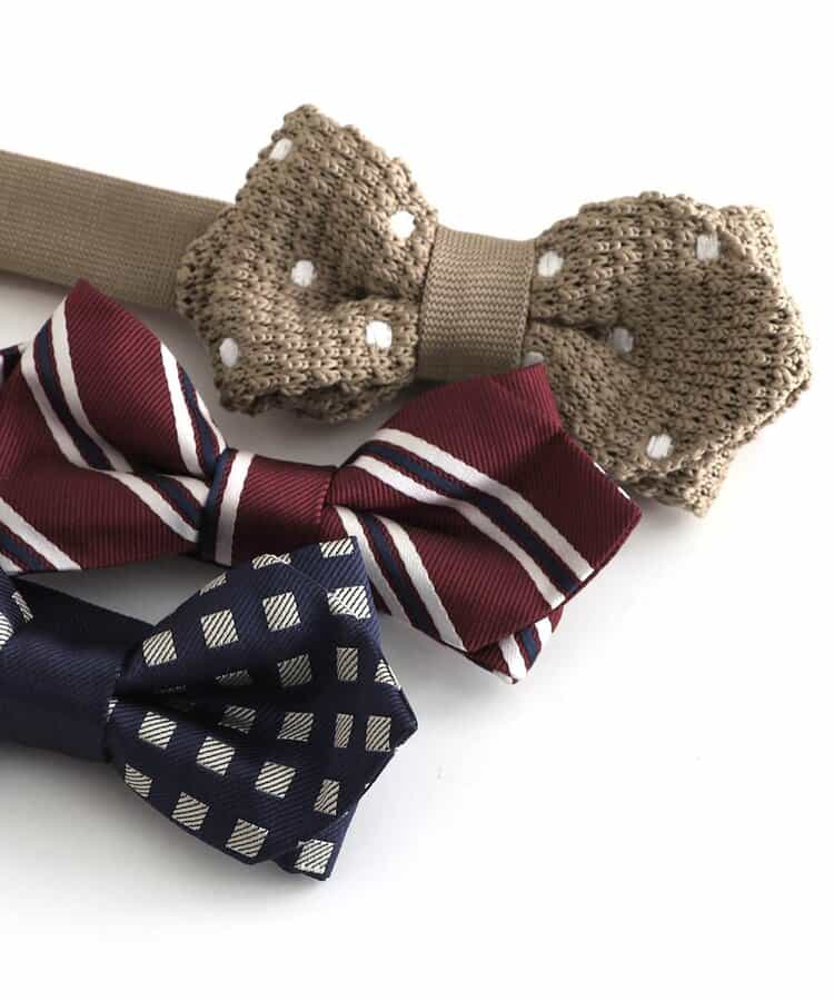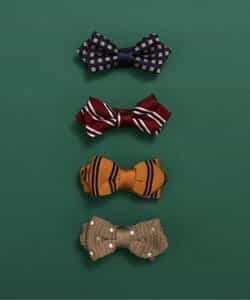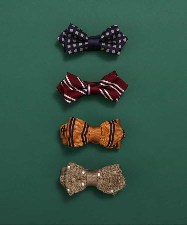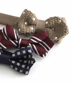 【BREEZE FORMAL】バリエーション豊富!楽しく選べるチョウタイ♪白ドット×ベージュ、チェック×ネイビーブルー、斜めストライプ×レッド、ストライプ×イエローフォーマルコーデが一気に華やかになるポイントアイテム。長さの調整もカンタンです♪