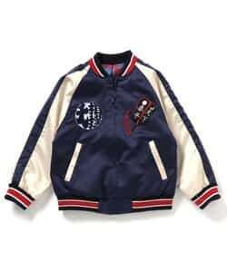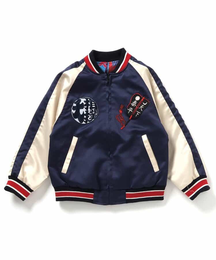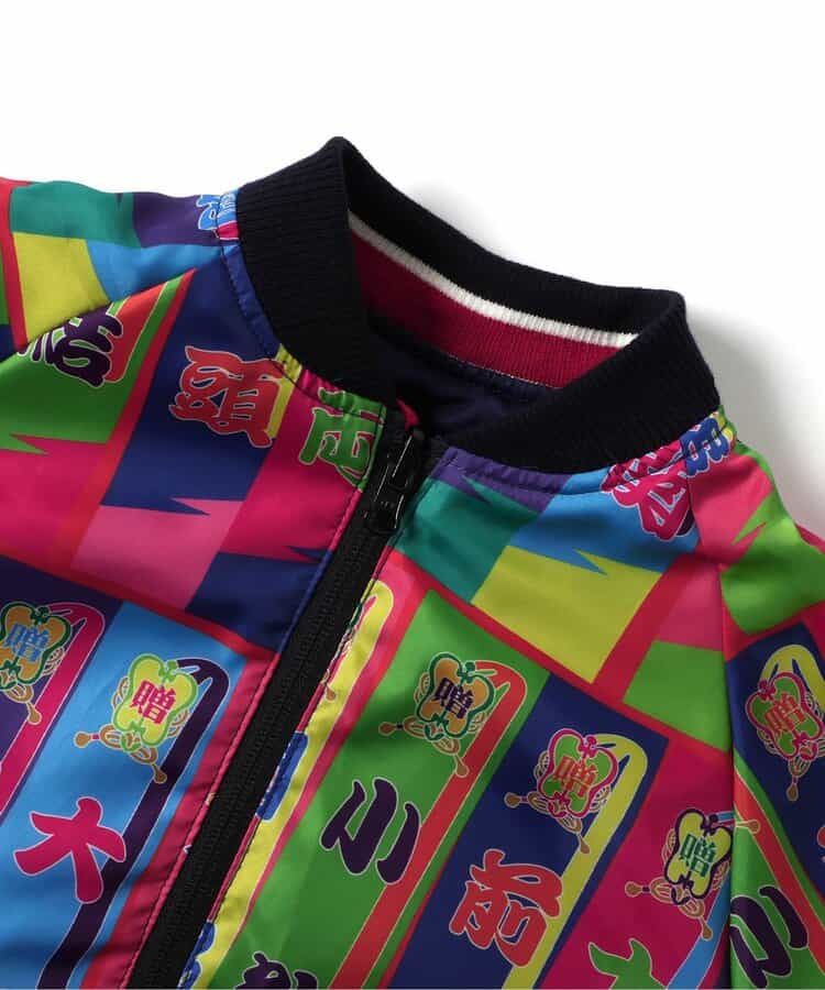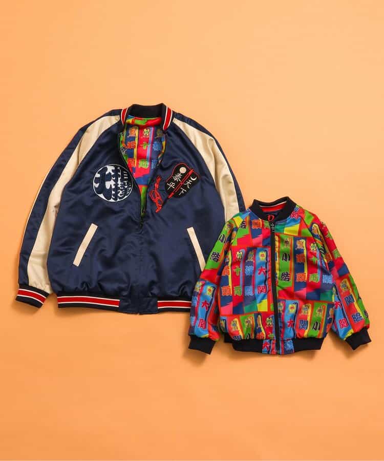 【日本相撲協会監修】インパクト大!リバーシブル仕様のスカジャン。表側は浮世絵の力士や両国国士館のほか、富士山や日の丸など日本を象徴するモチーフのリッチな刺繍が施されたこだわりのデザイン!裏面は「興行のぼり旗」をイメージした、カラフルな相撲の階級が並んでおり存在感抜群◎表裏でイメージがガラッと変わるリバーシブルスカジャンは、親子でおそろいも楽しめる日本相撲協会お墨付きアイテム、必見です!