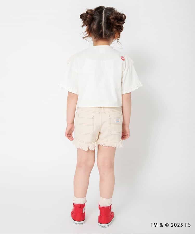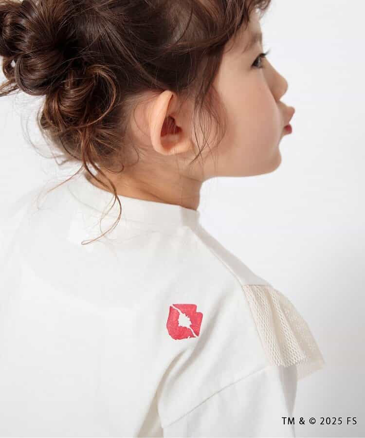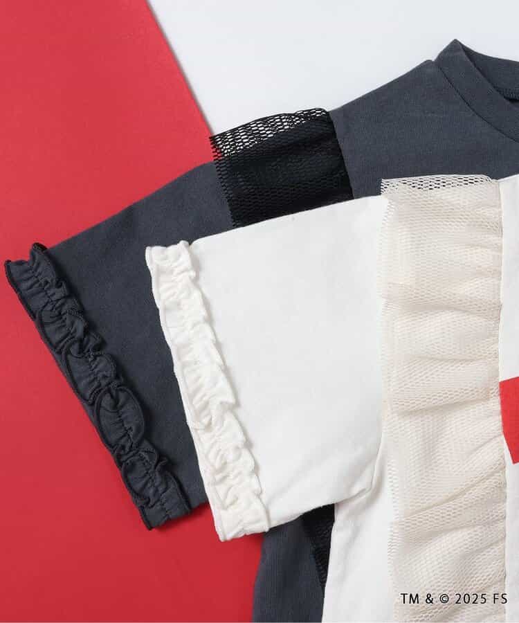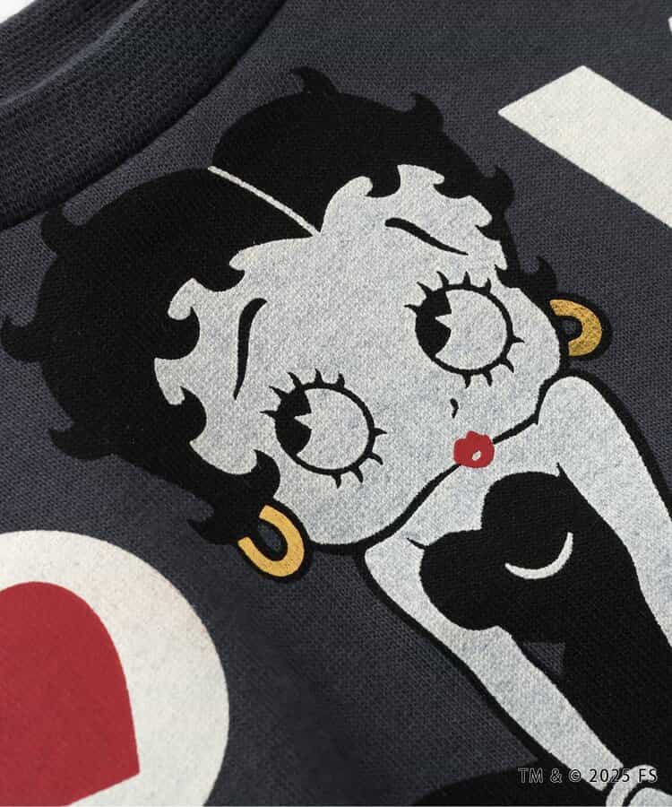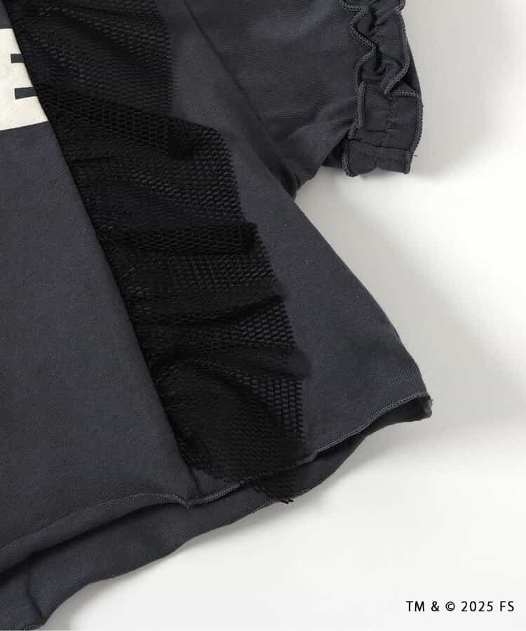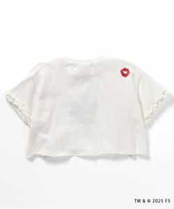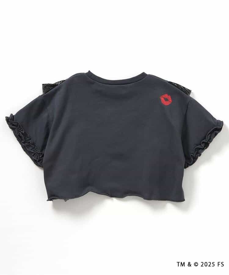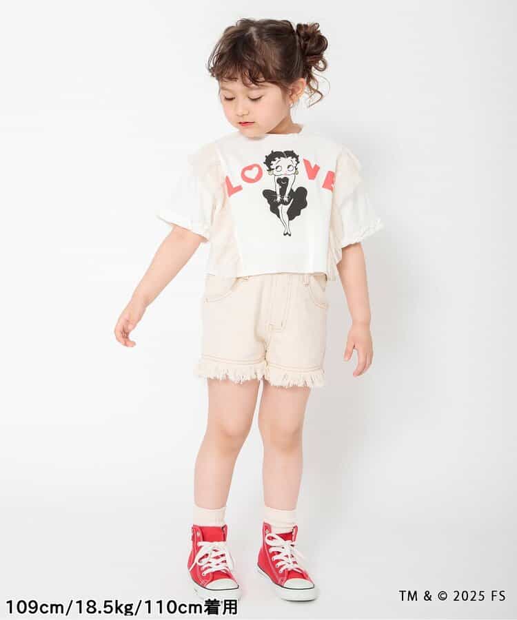 【Betty Boop (TM)】ベティーちゃんや「LOVE」のプリントが目を惹くデザインのTシャツは、メッシュ素材のフリル付きで存在感抜群!袖部分やバックプリントにも注目◎短めの着丈でどんなボトムスともバランスよく着ていただけます♪ゆったりワイドなシルエットなので暑い夏もストレスフリー◎お出かけにもおすすめアイテムです♪