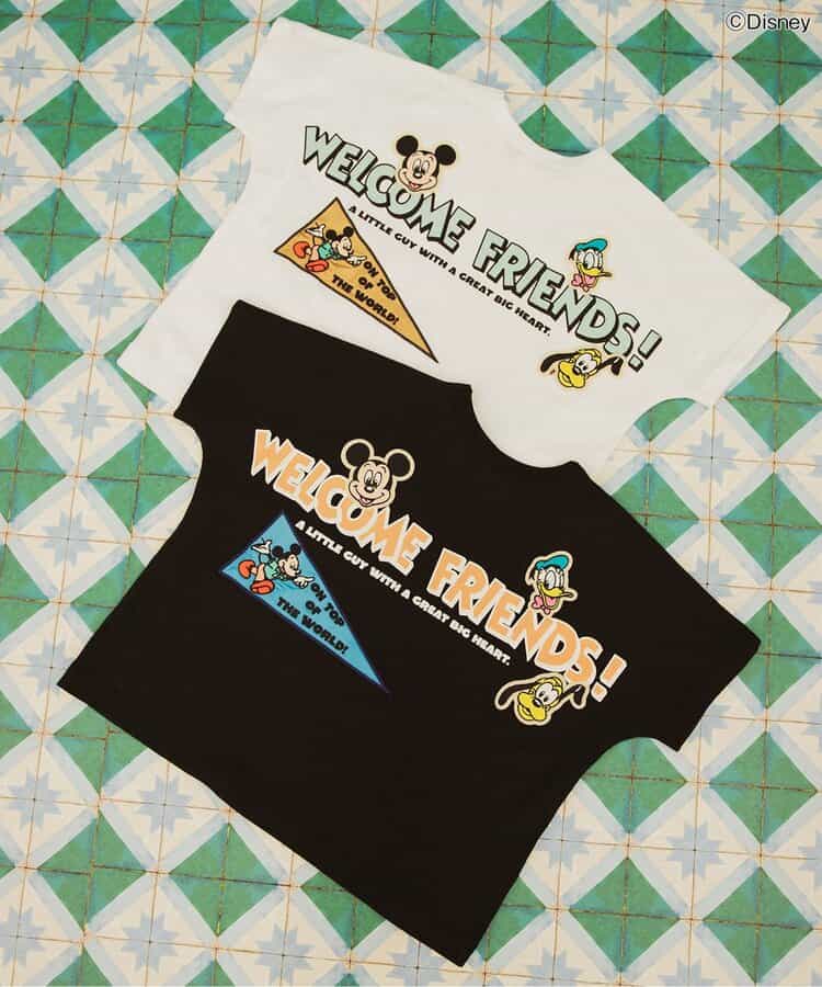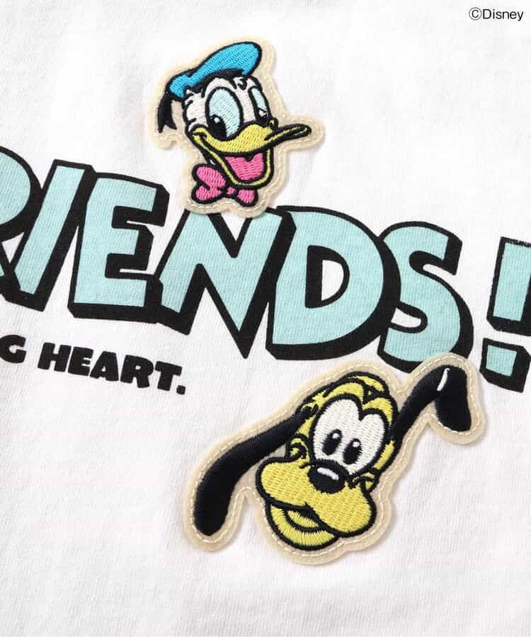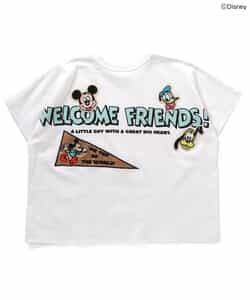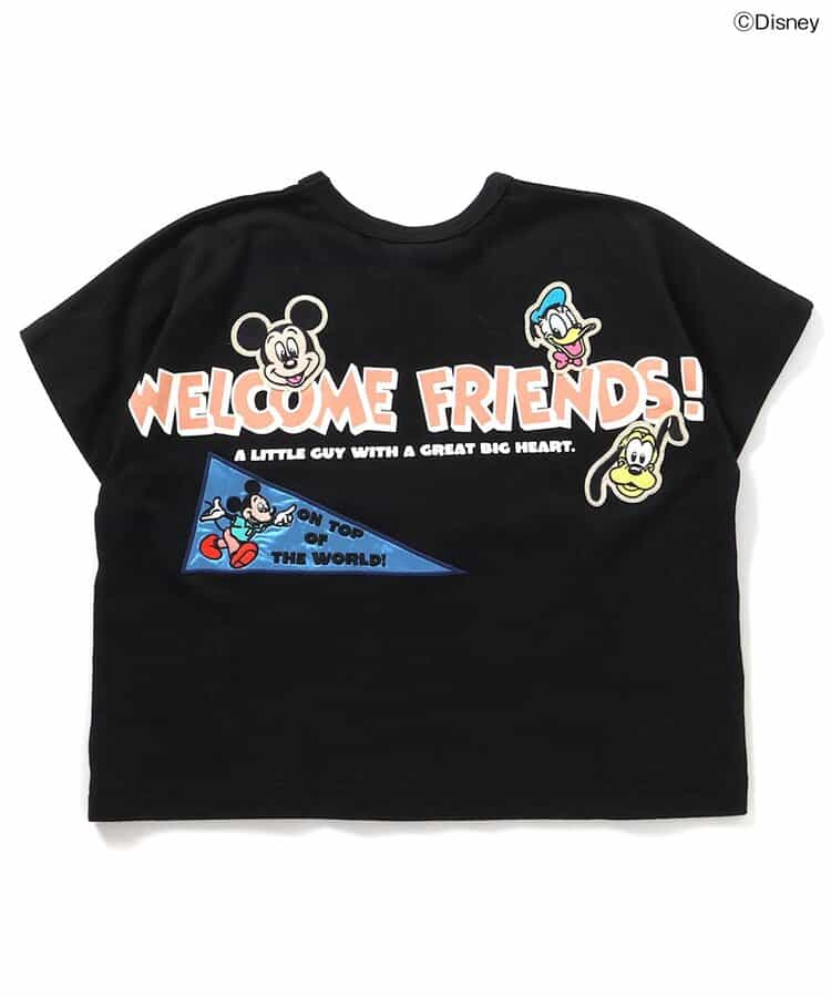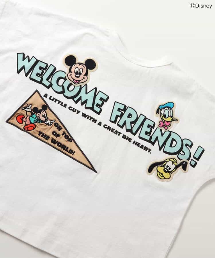 【Disney】 ヴィンテージ感のあるデザインと、ワッペンがポイントのTシャツは、ブラックとオフホワイトの2色展開◎ Tシャツのうしろには、ミッキー・マウス、ドナルドダック、プルートが描かれており豪華なデザイン☆ 袖ぐりがゆったりしているのが特徴のドルマンTシャツは、体にフィットしすぎず、着心地もゆったり◎ どんなボトムとも合わせやすく、シルエットもかわいいデザイン♪ この夏のお気に入りTシャツになること間違いなし☆☆