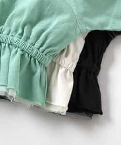 BREEZE(ブリーズ)の半袖Tシャツ「WEB限定 チュールフリルラグランTシャツ」は、手頃な価格と豊富なバリエーションが人気!通園・通学にも使えるデザインが多く、着回し力抜群です!