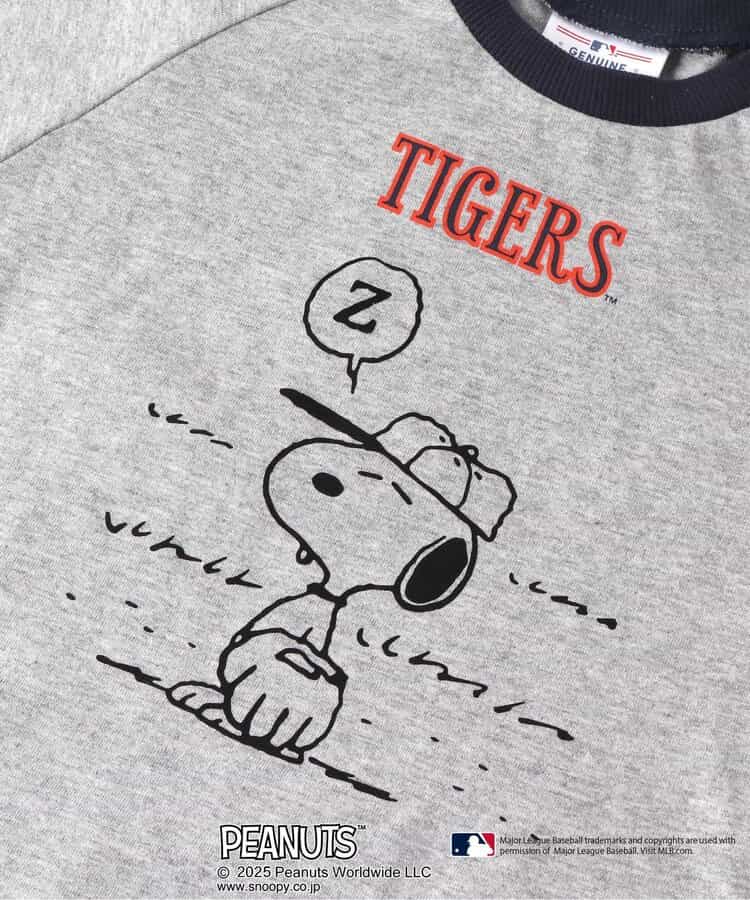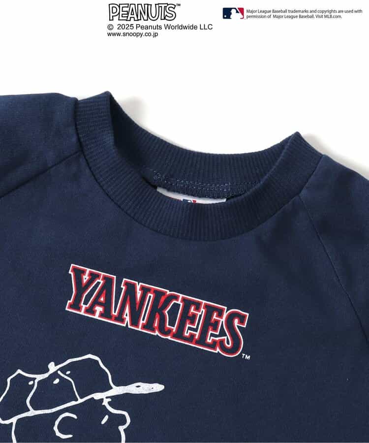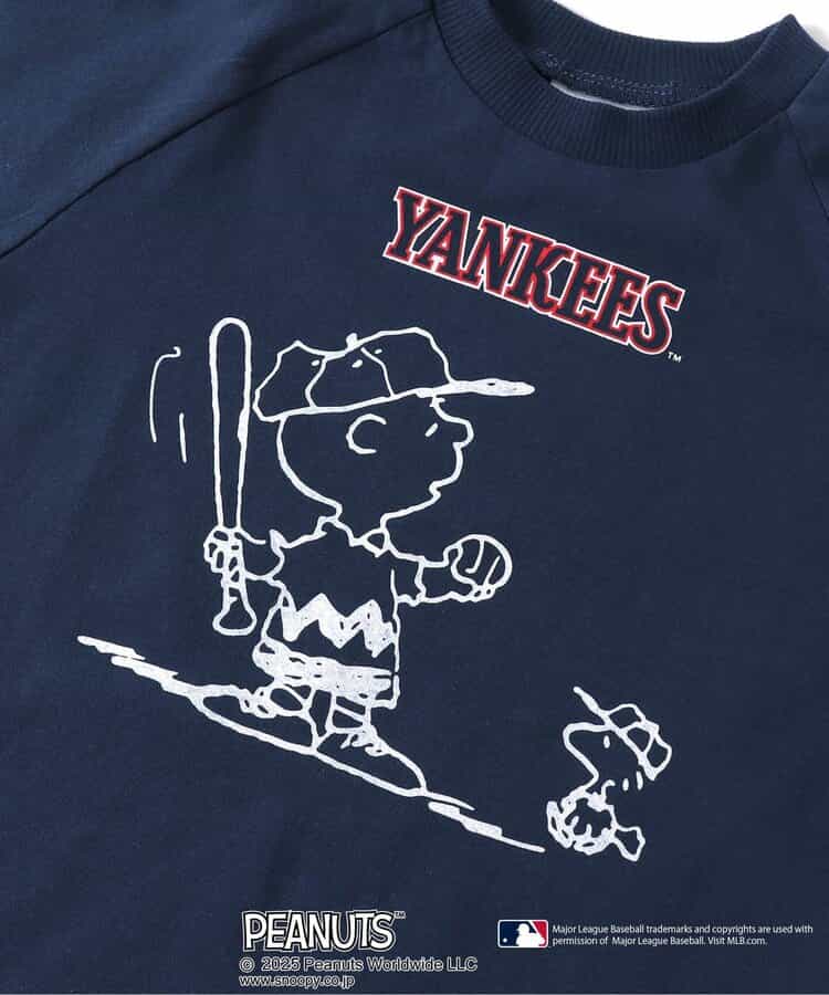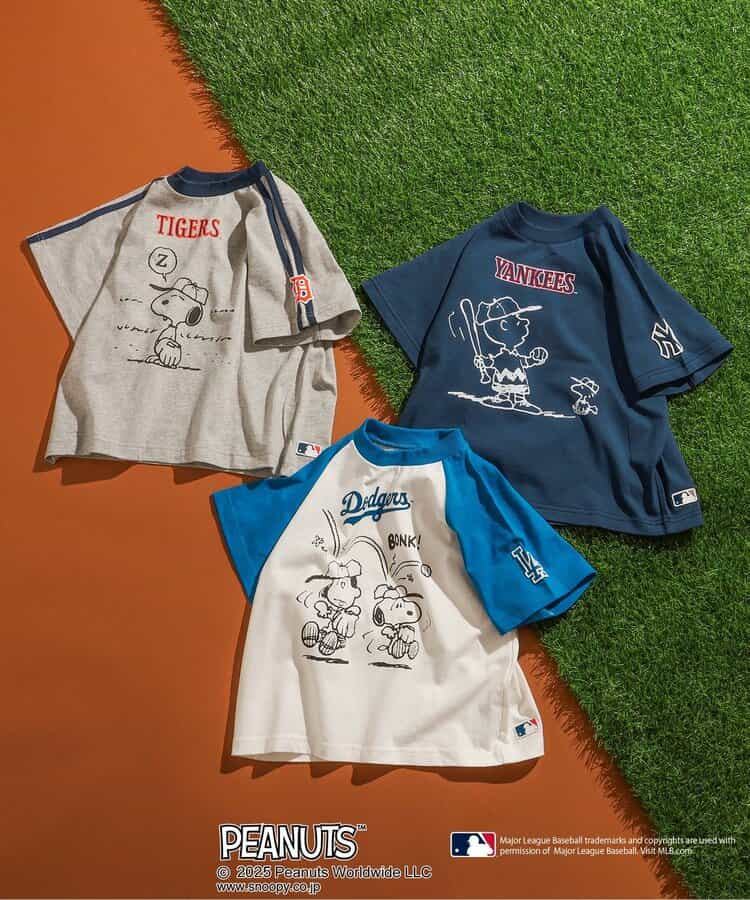 【2/20(木)21時~発売】 【PEANUTS×MLB】野球をしているPEANUTSのキャラクターが可愛らしいラグランTシャツ。ちょっぴりゆるめなキャラクターとスポーティーな野球デザインのギャップがたまらない‥♪MLBの球団ロゴ入りデザインはコラボならでは!袖にあしらったワッペンにも注目です◎野球好きさんは要チェック!