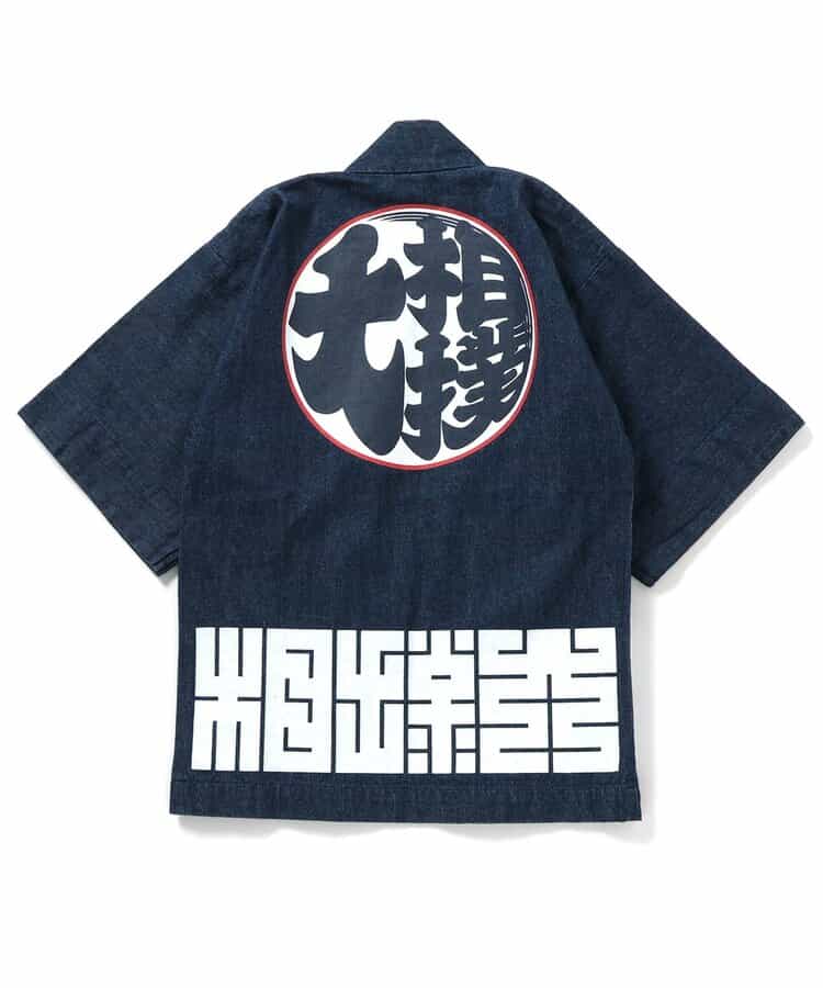 【日本相撲協会監修】 サッと羽織るだけで粋な雰囲気に! 「天下泰平」や「大相撲」の文字入りの法被はおしゃれなデニム素材。 親子でおそろいも楽しめる、日本相撲協会お墨付きグッズです!