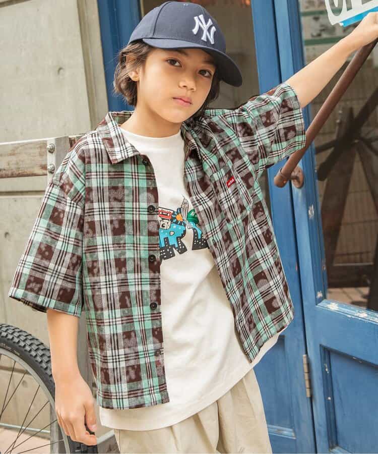 BREEZE(ブリーズ)のシャツ・ブラウス「B NEWJACK ケミカルプリントチェックシャツ」は、トップスとしても羽織としても着まわせる人気アイテム!1枚持っているとコーディネートの幅がぐっと広がります!