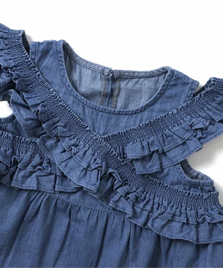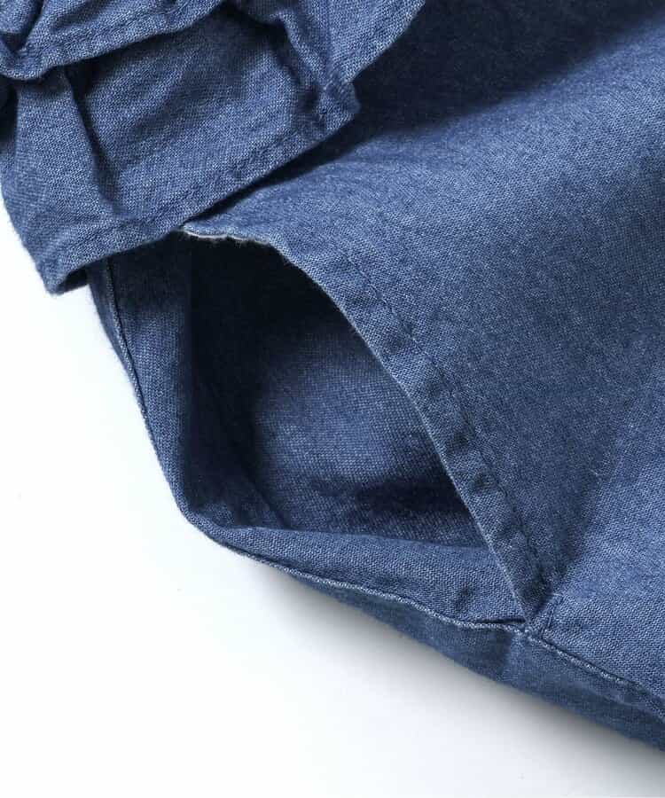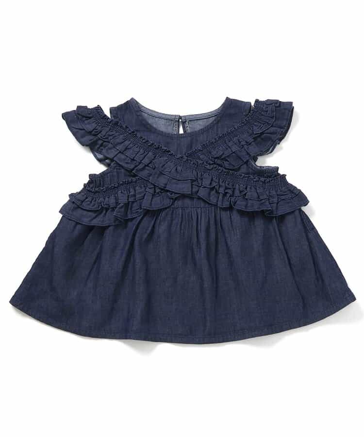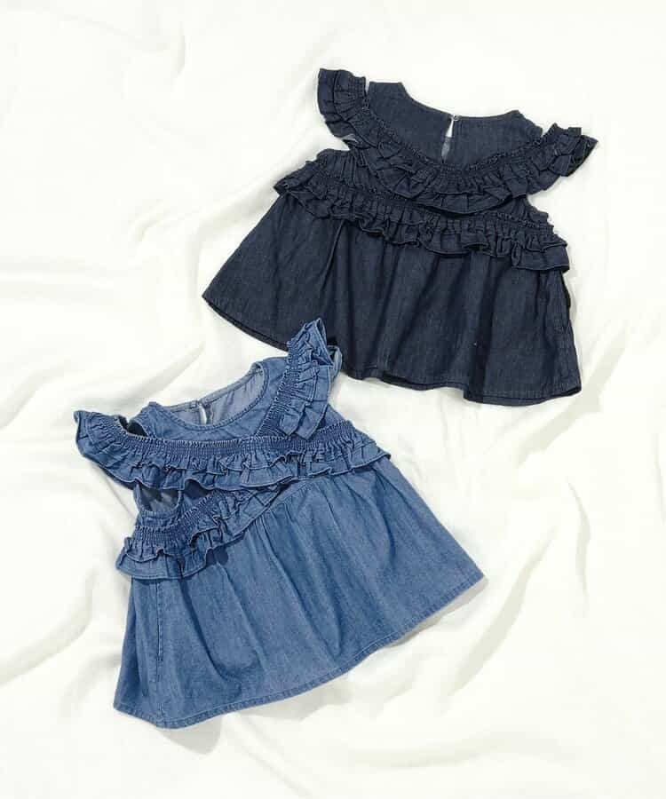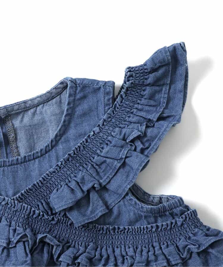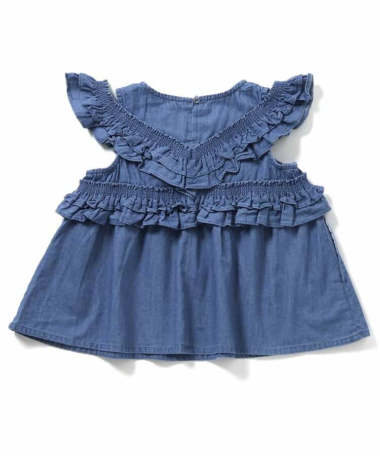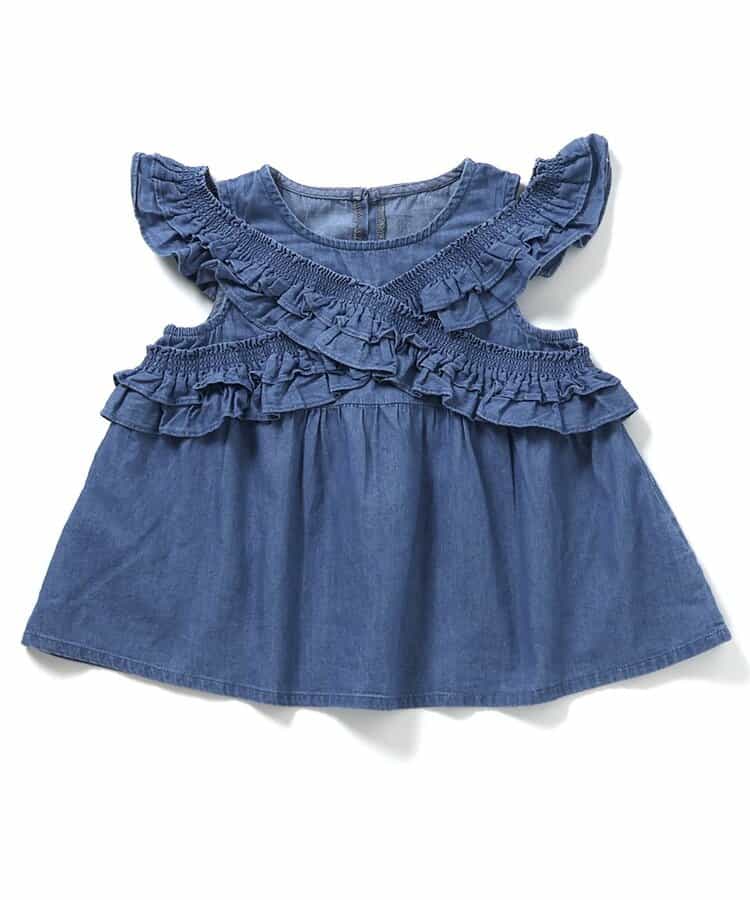 BREEZE(ブリーズ)のシャツ・ブラウス「デニムフリルチュニック」は、お出かけにも普段使いにも着まわせるデザインが人気!色や柄、シルエットでかわいさを引き出します♪