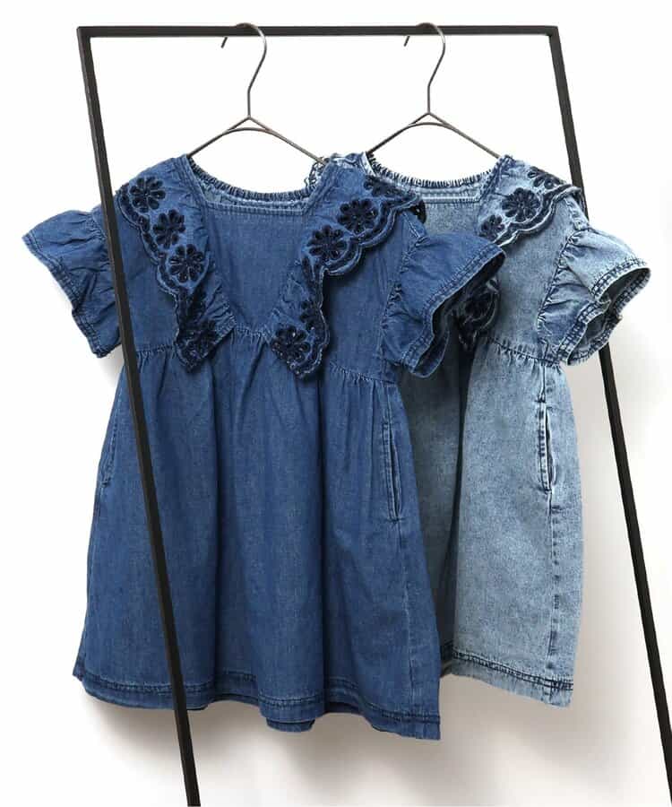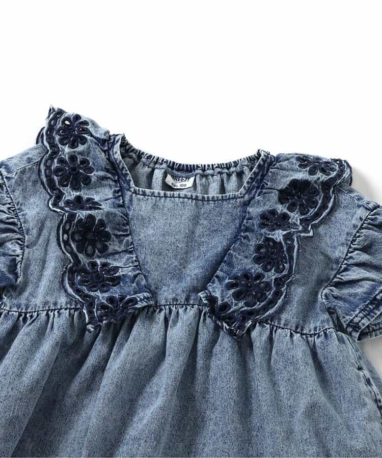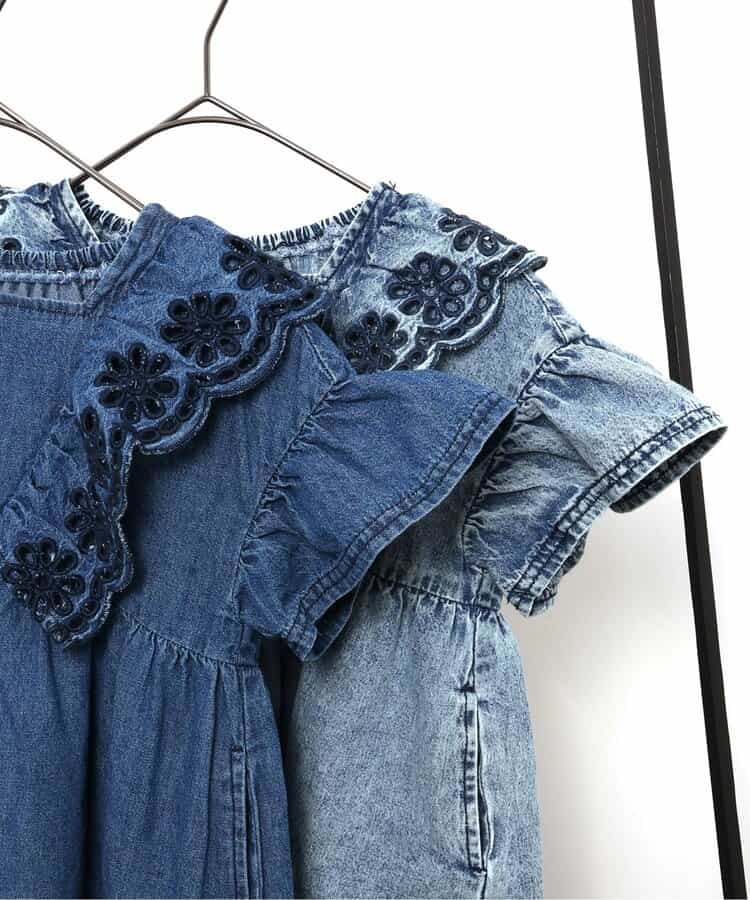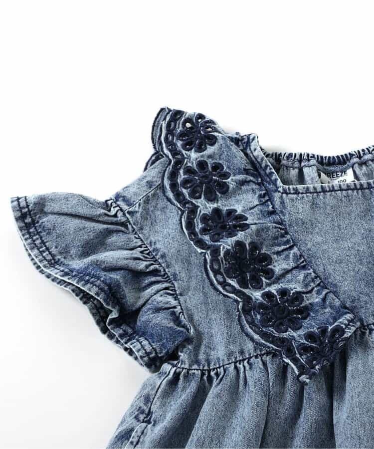 BREEZE(ブリーズ)のワンピース「カットワークデニムワンピース」は、お出かけにも普段使いにも着まわせるデザインが人気!色や柄、シルエットでかわいさを引き出します♪
