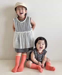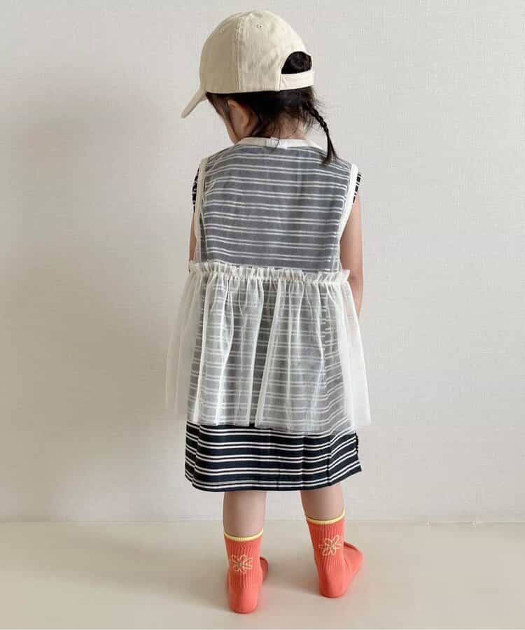 【WEB限定アイテム】 夏の暑い季節も快適におしゃれが楽しめる、女の子のボーダー柄ワンピース♪ カラフルで目をひくデザインながら、くすみ感のあるカラー展開なので、コーデに取り入れやすくおしゃれ見えも◎ お出かけから公園スタイルまで幅広く活躍! きょうだいでおそろいコーデも楽しめる、おすすめの一枚です♪ ▼ユニセックスで着用◎同じ柄デザインのアイテム!J210905 WEB限定 ボーダータンクトップ >>