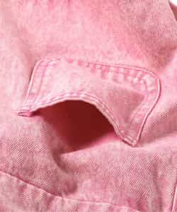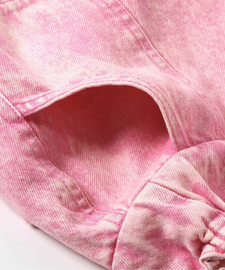 この商品はユーズド感を出す為、製品洗い・製品染め・ブリーチ(脱色)・生地切れ・糸切れ等の2次加工を施しております。