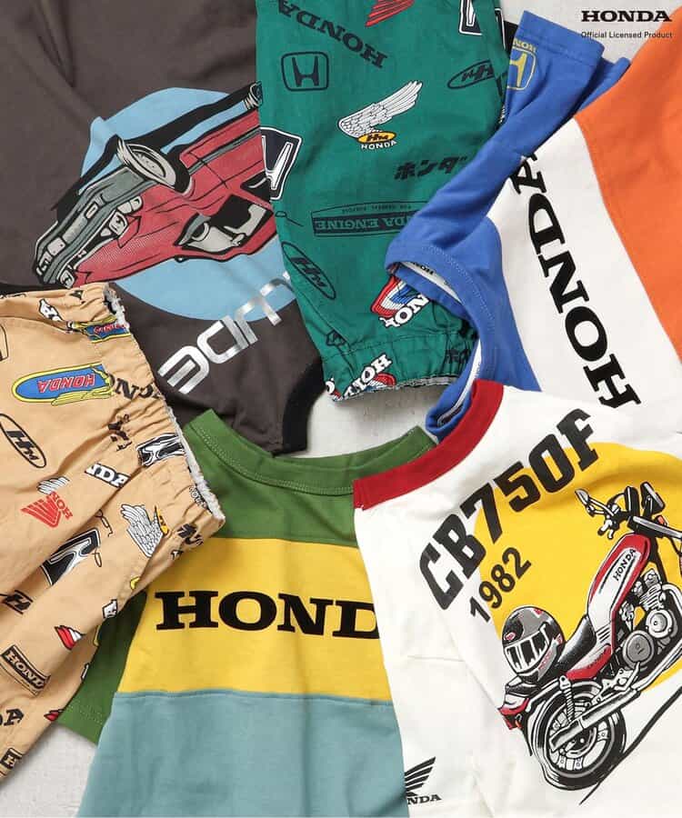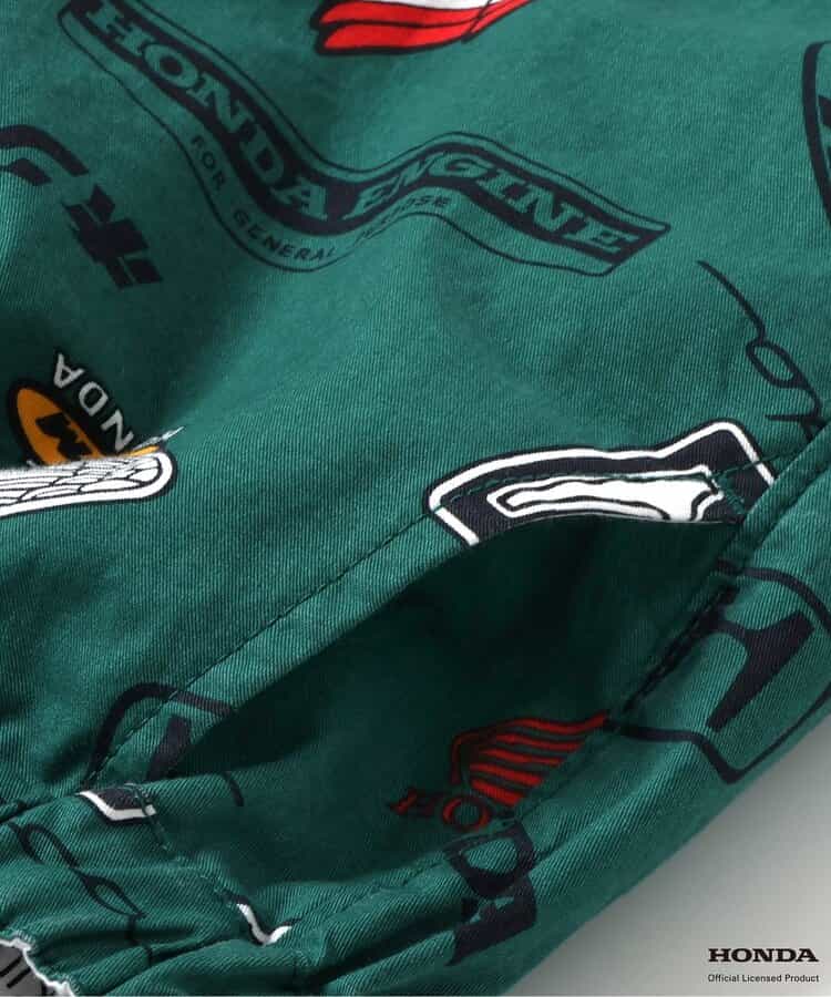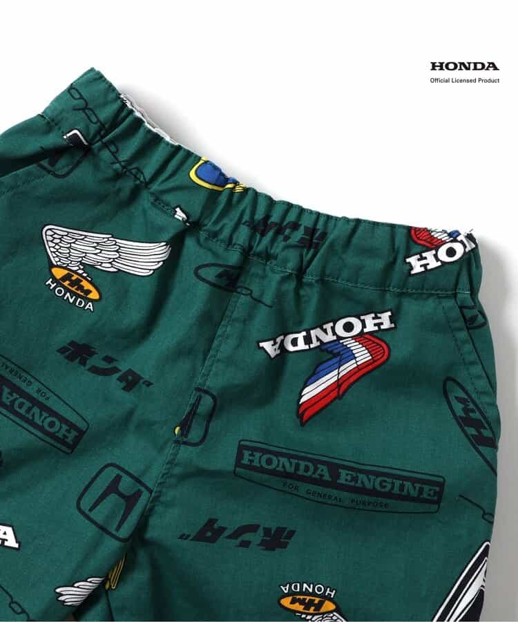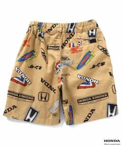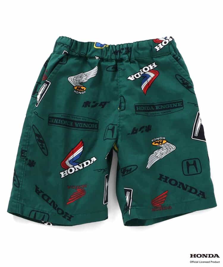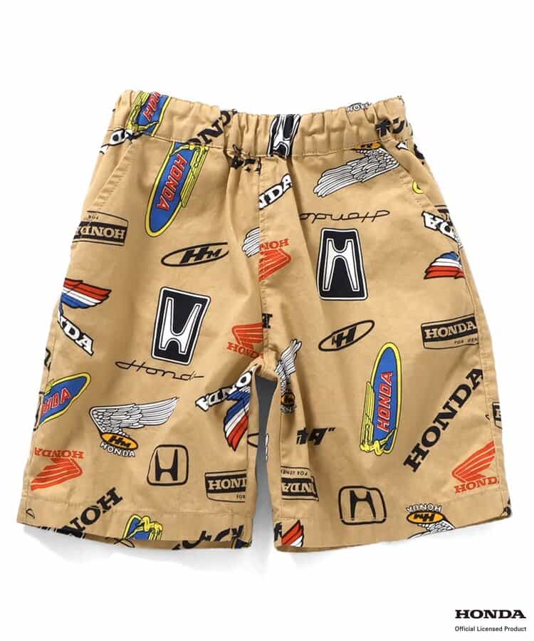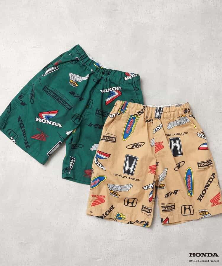 【Honda】Hondaコラボデザインのアイテムが登場!コラボならでは!Hondaのロゴやエンブレムがデザインされた特別感のあるハーフパンツは、夏のおでかけやアウトドアにぴったり!おしゃれな総柄デザインと落ち着いたカラーの組み合わせがコーデのポイントに☆夏はHondaコラボ4柄Tシャツと合わせたスタイリングもGOOD◎きょうだいでおそろいも◎車好きキッズにぜひ着てほしい、おすすめのアイテムです◎