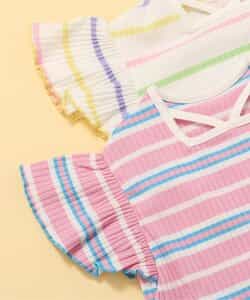 【2/24(火)21:00~販売】BREEZE(ブリーズ)のカバーオール・ロンパース「【リンク】メロウリブフリルロンパス」は、小さいお洋服にこだわりを詰め込んだ大人顔負けのデザインが人気!出産祝いのギフトにもおすすめです♪<お取り扱いのご注意>この商品は着用中の摩擦や洗濯により毛羽の乱れ、毛羽脱落、毛玉が生じることが有ります。できるだけ美しくご利用頂く為に次のことにご留意下さい。○毛玉は毛玉取り器またはハサミで丁寧にカットして下さい。○毛羽が他に付着した際はテープやブラシで除去して下さい。○他の製品とは洗わず、単独でお洗濯して下さい。○タンブル乾燥はお避け下さい。