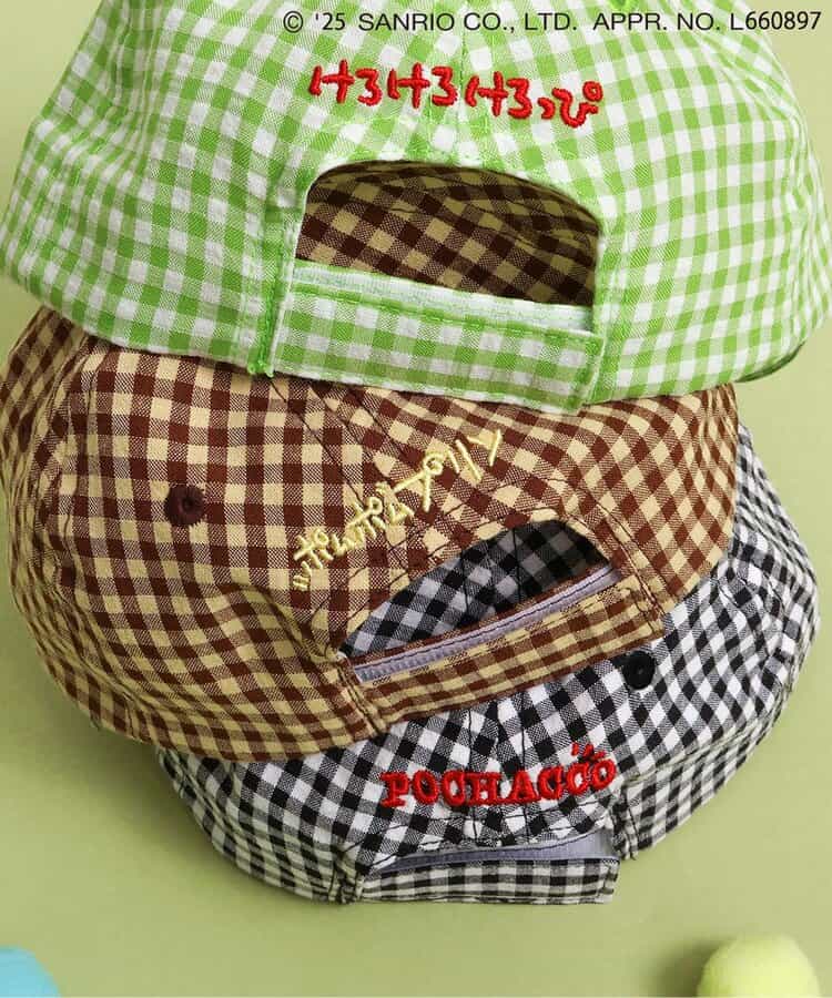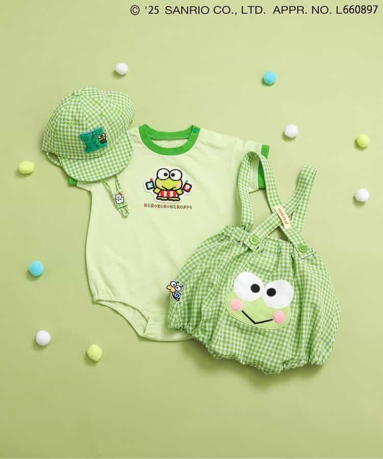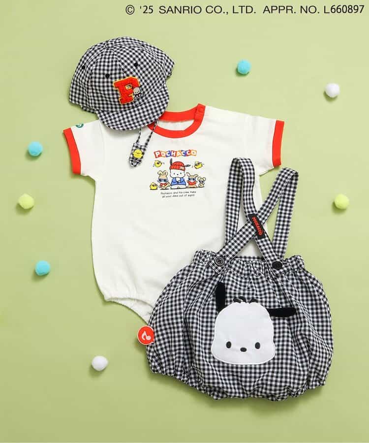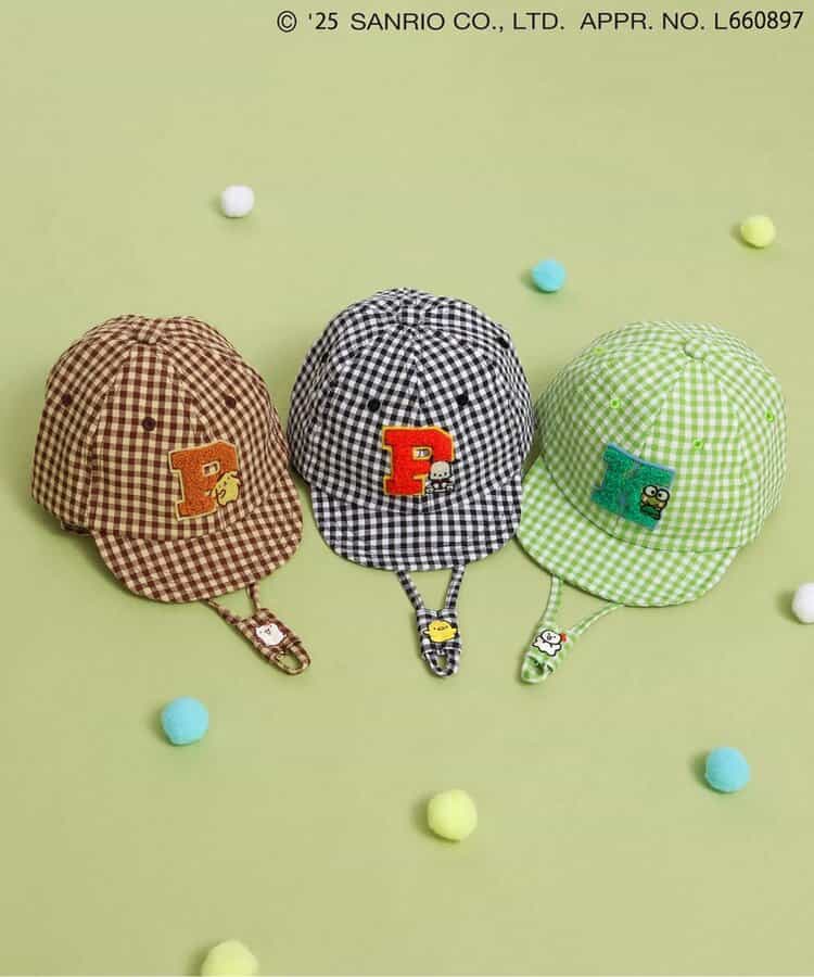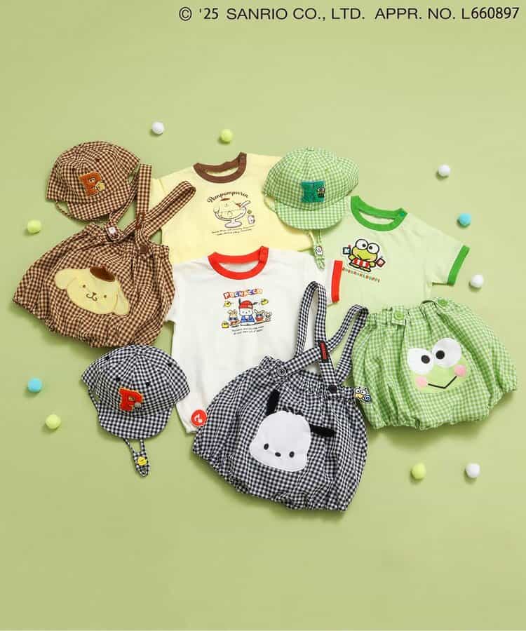【5/30(金)お昼12時~発売】 【サンリオキャラクターズ】 けろけろけろっぴ・ポムポムプリン・ポチャッコのBABYアイテムが登場! サス付きおしりモチーフブルマと同じギンガムチェックのベビーキャップ。 アジャスターにはそれぞれ大切なお友だちが!!☆ ウェアと合わせて被るとかわいさ倍増◎ ママ世代もなつかしいキャラクターたち・・♪みんなはどれにする??♪