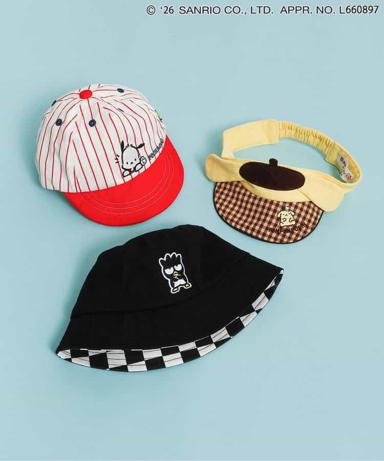 ※販売日は前後する場合がございます。 【サンリオキャラクターズ】バッドばつ丸、ポチャッコ、ポムポムプリンの帽子が登場! ャラクターデザインとスポーツウェアの組み合わせがとってもキュート♪ 同じデザインでベビーのロンパスと キッズTシャツとでリンクコーデも楽しめる!きょうだいでおそろいもおすすめ◎