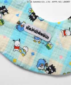 【2/13(金)お昼12時~発売予定】 【サンリオキャラクターズ】「はぴだんぶい」のアイテムがBREEZEに登場!総柄デザインでさわやかなカラーが目をひくガーゼスタイ♪はぴだんぶいのメンバーがちらり・・!タグもポイント♪同じデザインの他のアイテムと合わせてベビーギフトにもおすすめです◎
