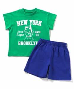100:身丈40 身幅36 肩幅33 袖丈7 袖口幅13.5 ウエスト幅22 前股上20 股下10 足口幅22.5 腰幅36.5