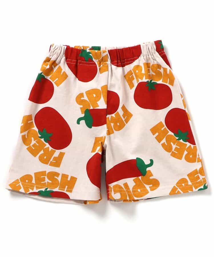 110:身丈43 身幅38 肩幅35 袖丈8 袖口幅14 ウエスト幅23 前股上21 股下12 足口幅23.5 腰幅37.5
