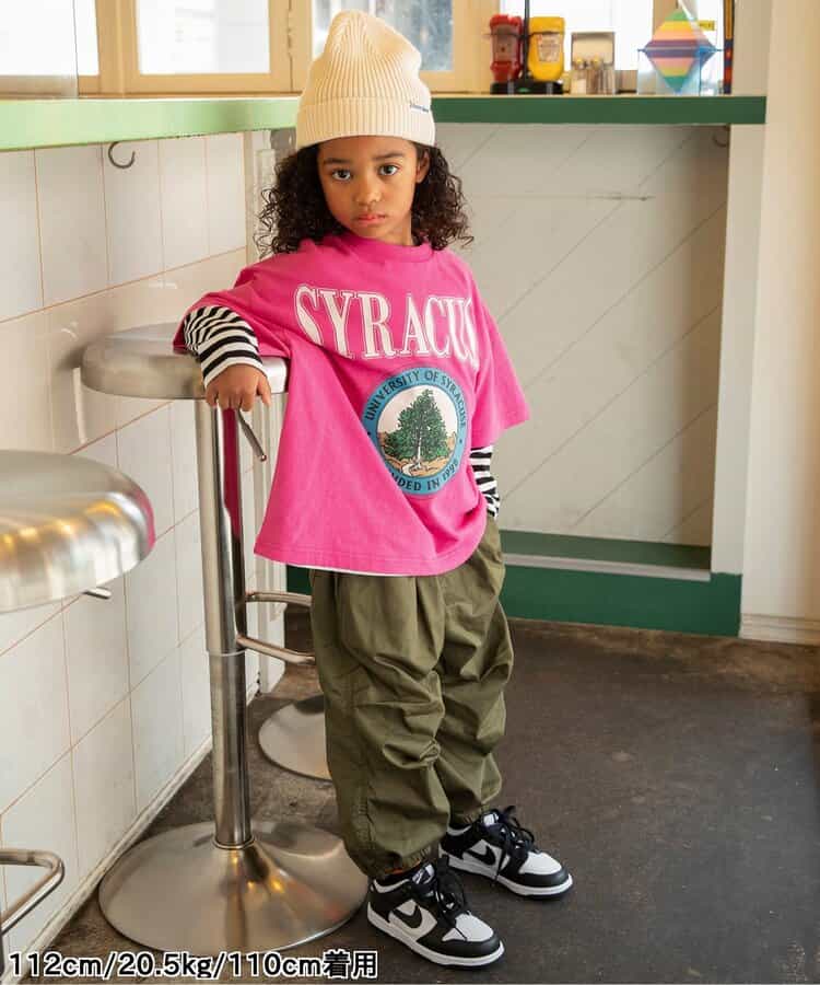 オーバーサイズになっているのでジャストサイズ購入をおすすめします。透けることもなくしっかりした生地なのでロンTと合わせれば秋まで着れます。ベストと合わせたり小物次第で色んなコーデが楽しめる1枚です。 4歳5ヶ月 / 身長101cm / 13kg / 110cm着用でちょうど良いオーバーサイズ感でした。#PR
