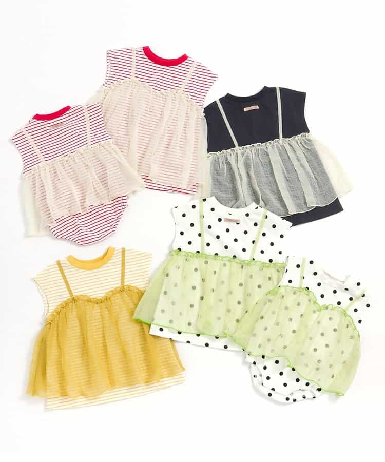 透け感のあるチュールキャミを重ねたレイヤード風デザイン。