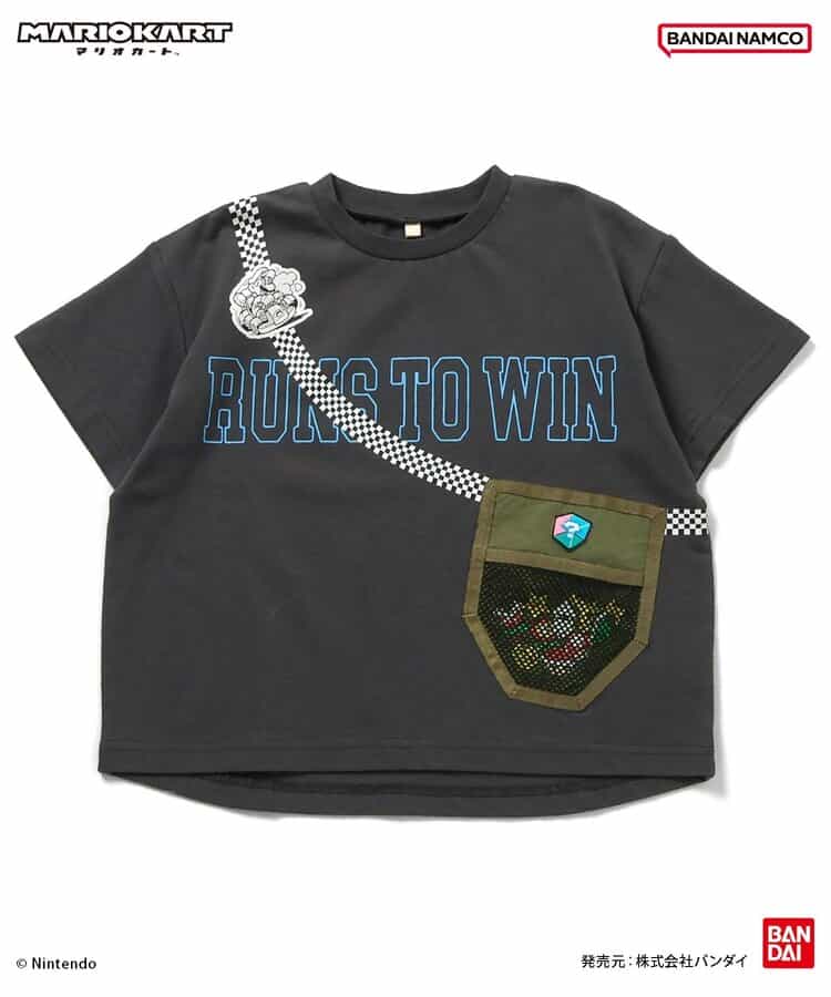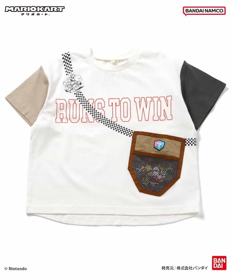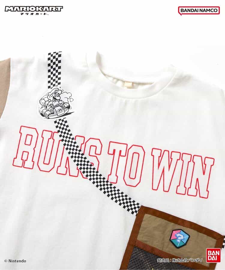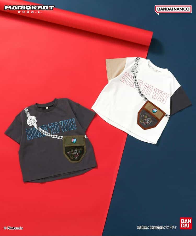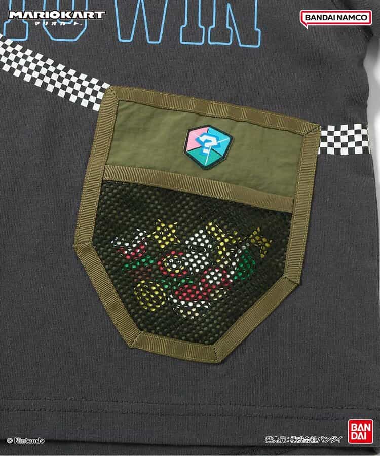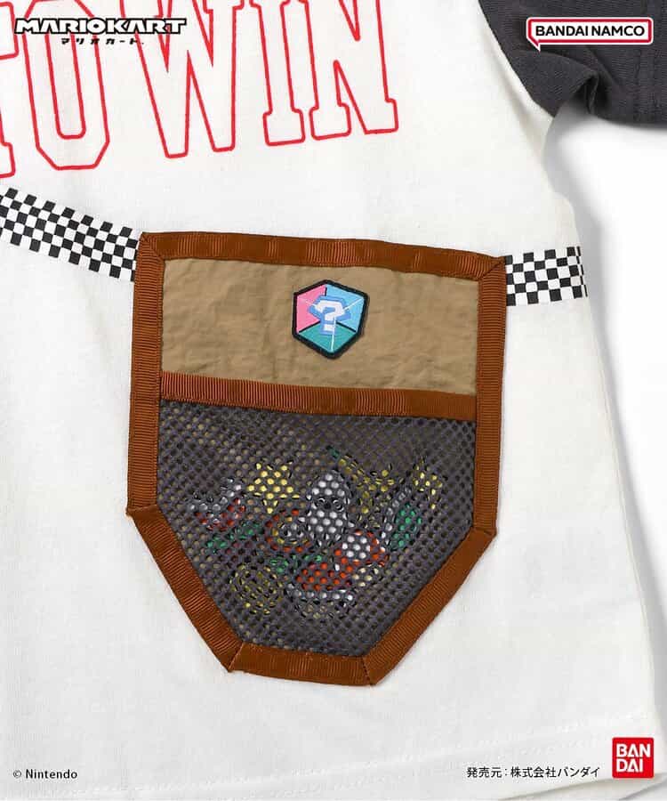 【マリオカート】着ているだけでわくわくしちゃう♪サコッシュをつけているようなデザインで、ポケットの中にはマリオカートに登場するアイテムが集合!きょうだいでおそろいも◎この夏のお気に入りTシャツに!