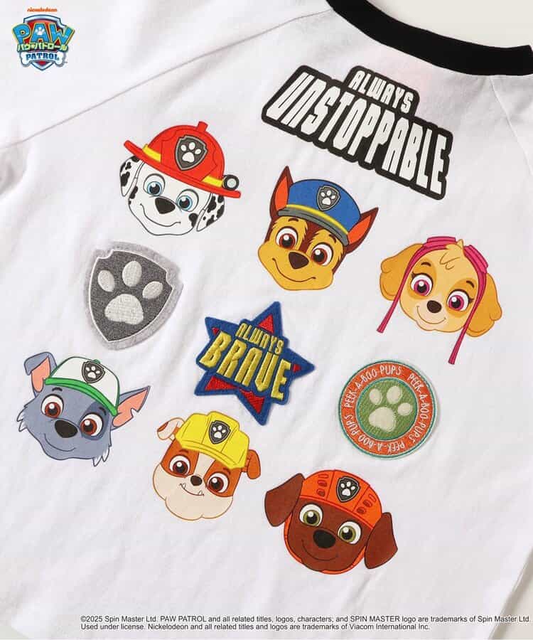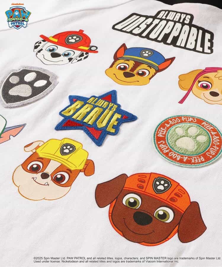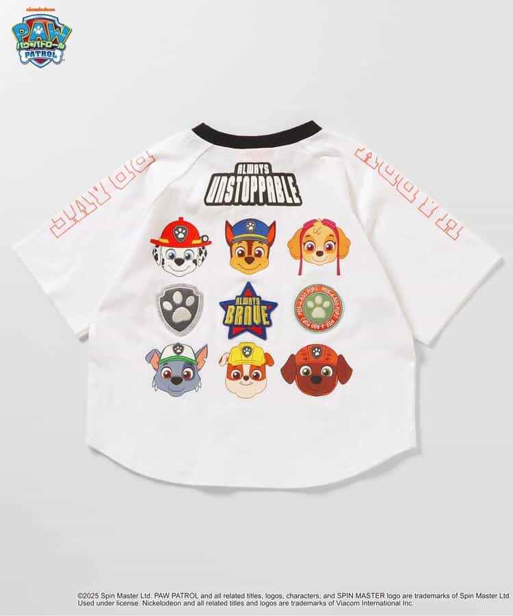 【6/4(水)お昼12時~発売】 【パウ・パトロール】大人気テレビアニメ「パウ・パトロール」のアイテムが登場!スポーティーなシンプルなTシャツと思いきや‥後ろ姿は個性豊かな子犬たちなどの「パウパト」モチーフワッペンがたくさん♪この夏は「パウパト」のみんなといっしょにお出かけを楽しもう☆ ※オフホワイトにつきまして、下げ札のカラー名に【IV】と記載がありますが不良品ではございませんのご了承ください。