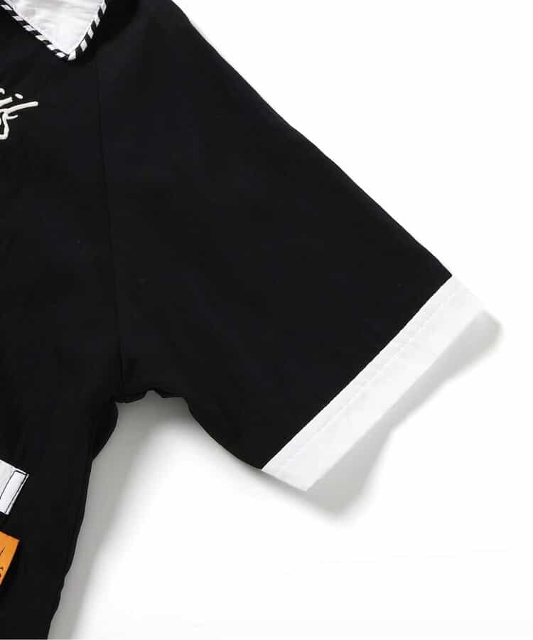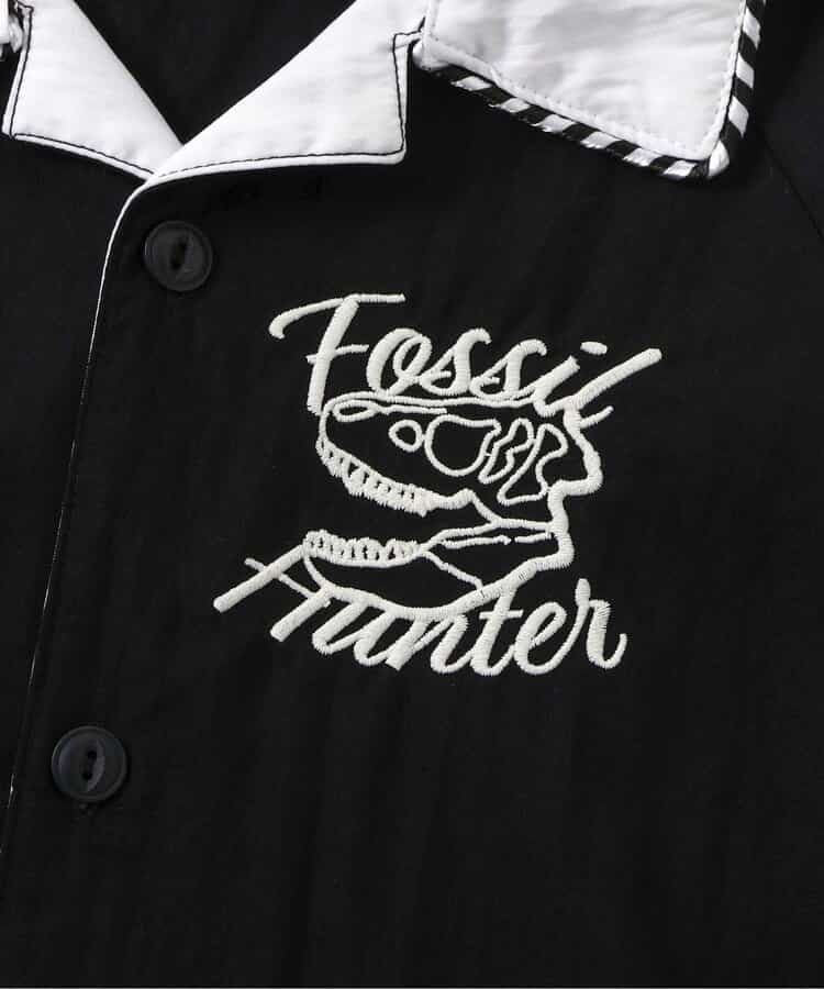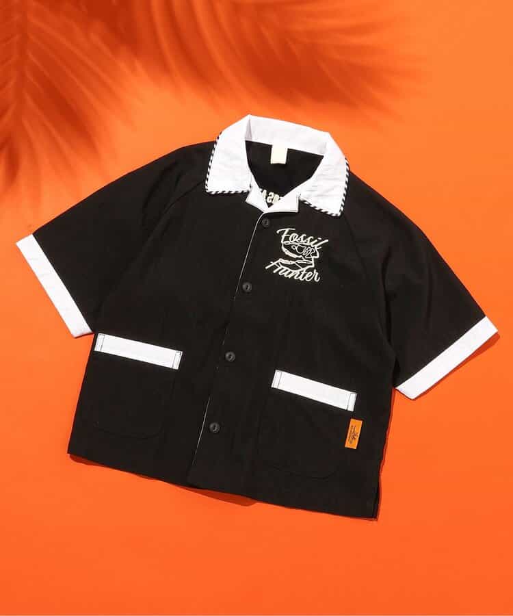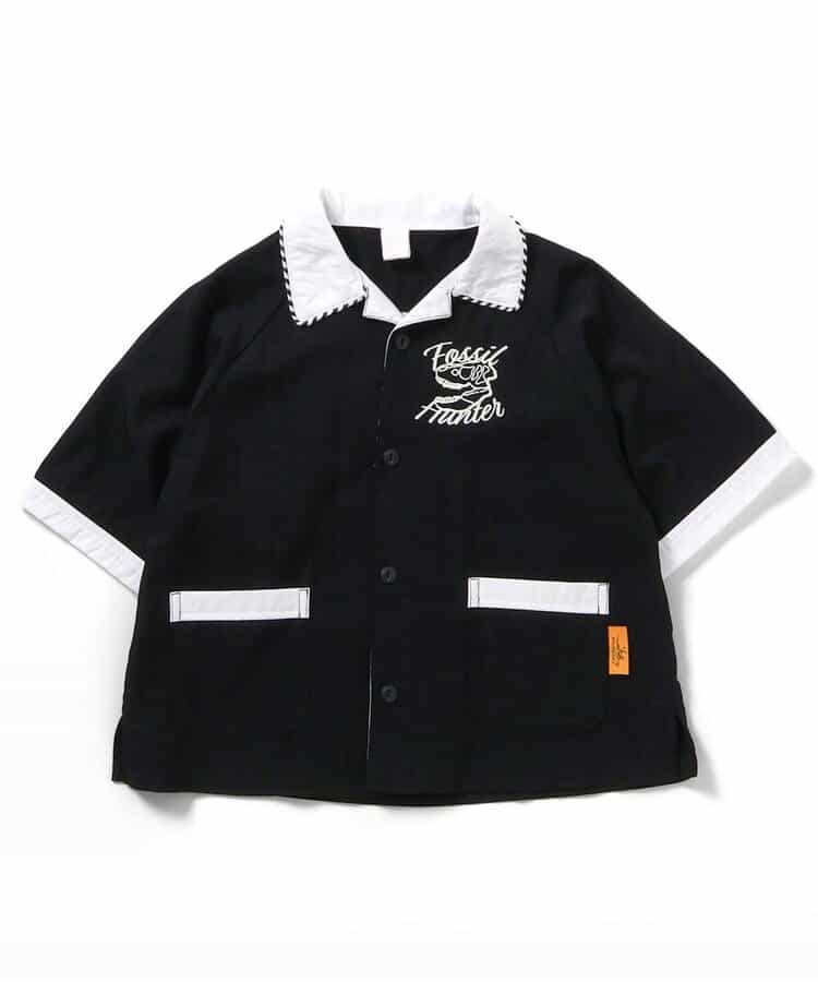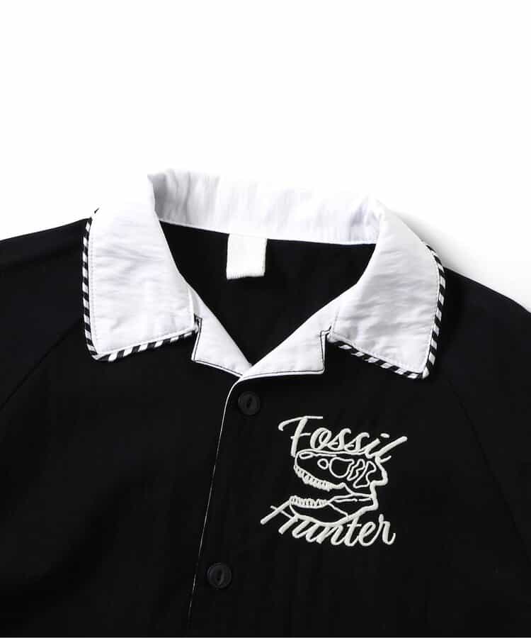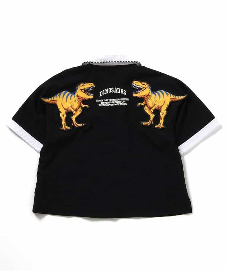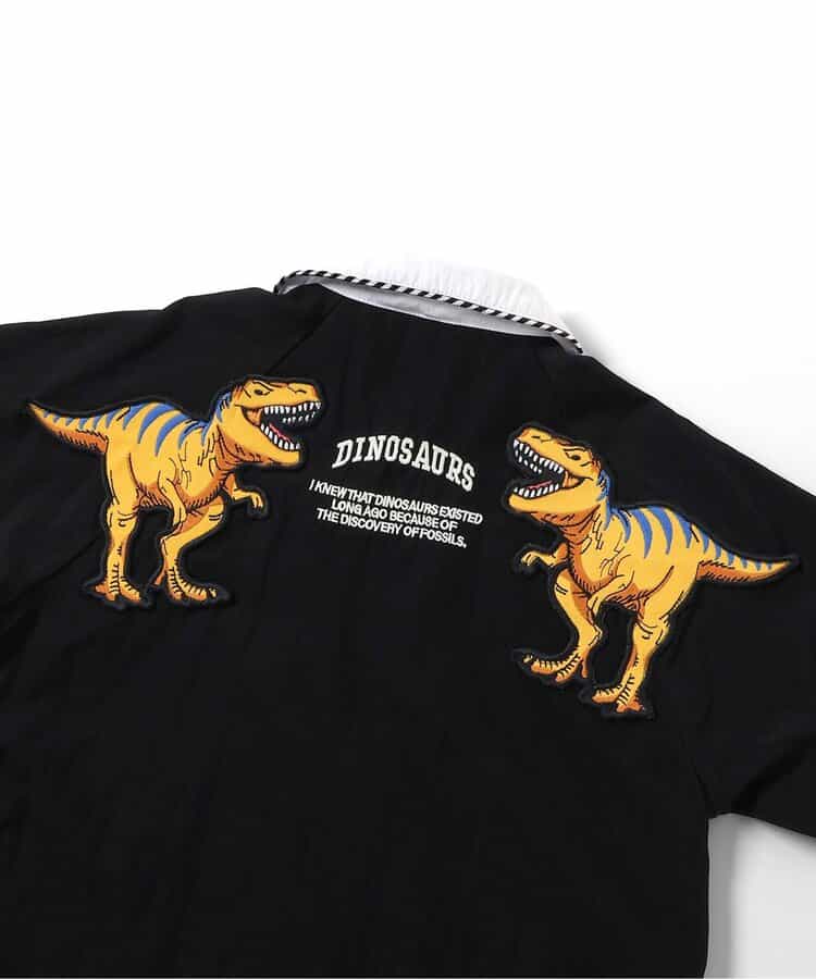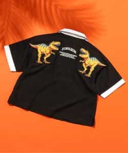 レトロなボーリングシャツに、大きな恐竜ワッペン風デザインを背中にドーンとのせた1枚!