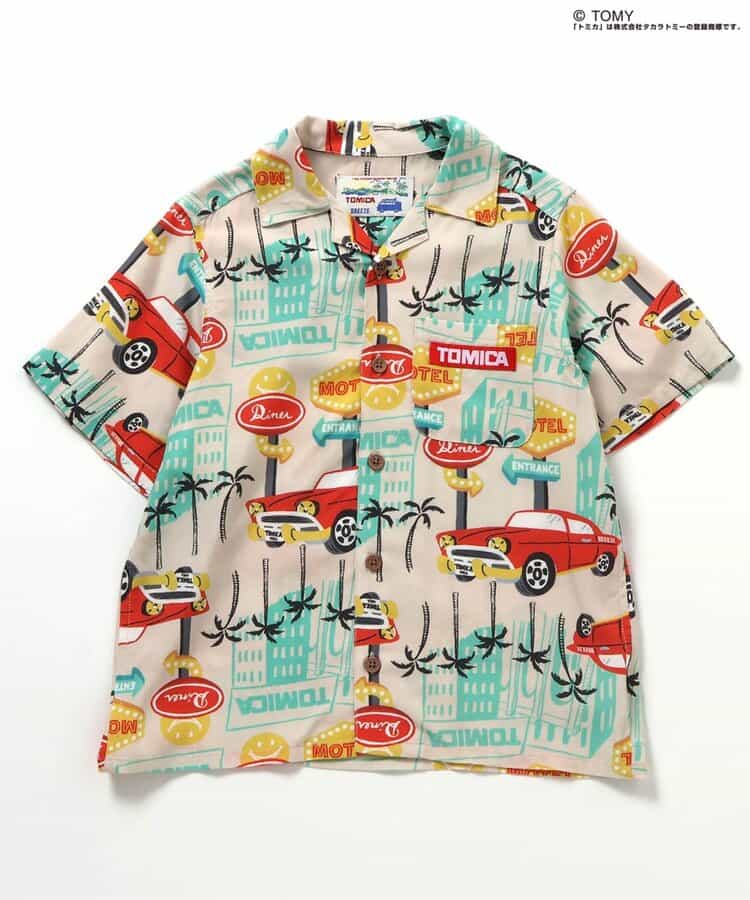 シャツのボタンを開けて、中からグラフィックTシャツを仕込んで・・TOMICA尽くしの組み合わせも◎