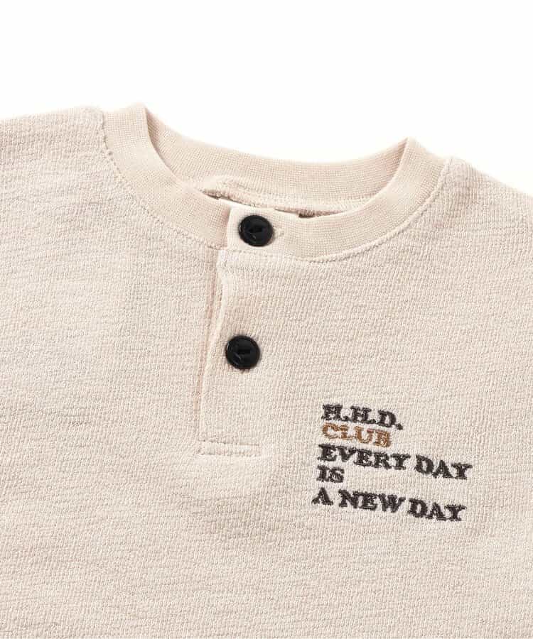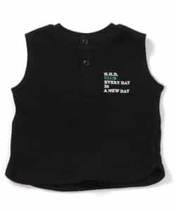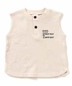 シンプルな胸元のロゴデザインと、ヘンリーネックがポイント★ 暑い夏もこれ1枚でおしゃれに◎ シンプルなデザインなので、上からシャツを羽織って、インナーとして着用してもGOOD◎ 着回しいろいろ・・1枚持っておくと便利なおすすめアイテム! 同じデザインのキッズサイズも要チェック!