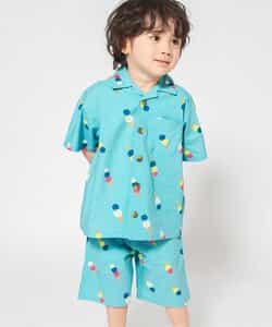 100:【トップス】身丈43 身幅40 肩幅31 袖丈15 袖口幅15.5 【パンツ】ウエスト幅22 前股上18.5 股下13.5 足口幅20 腰幅35.5
