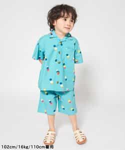 110:【トップス】身丈46 身幅42 肩幅33 袖丈16 袖口幅16 【パンツ】ウエスト幅23 前股上19.5 股下15.5 足口幅21 腰幅37.5