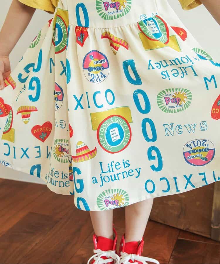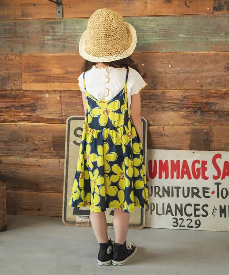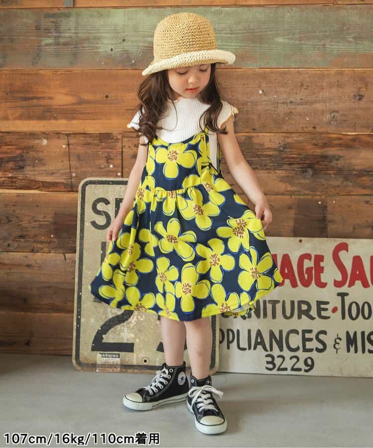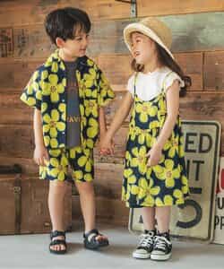 きょうだいでリンクコーデができちゃう!夏っぽい総柄デザインのワンピース♪ シワになりにくい素材を使用した『EASY CARE』アイテムなので、 夏の旅行や、お出かけ時のお着替えなど、折りたたんで持ち運びもラクチンです◎ 目を惹く大きな総柄デザインで、夏コーデの主役になること間違いなし★ アロハシャツやパンツ、ロンパースとお揃いコーデも可能です◎