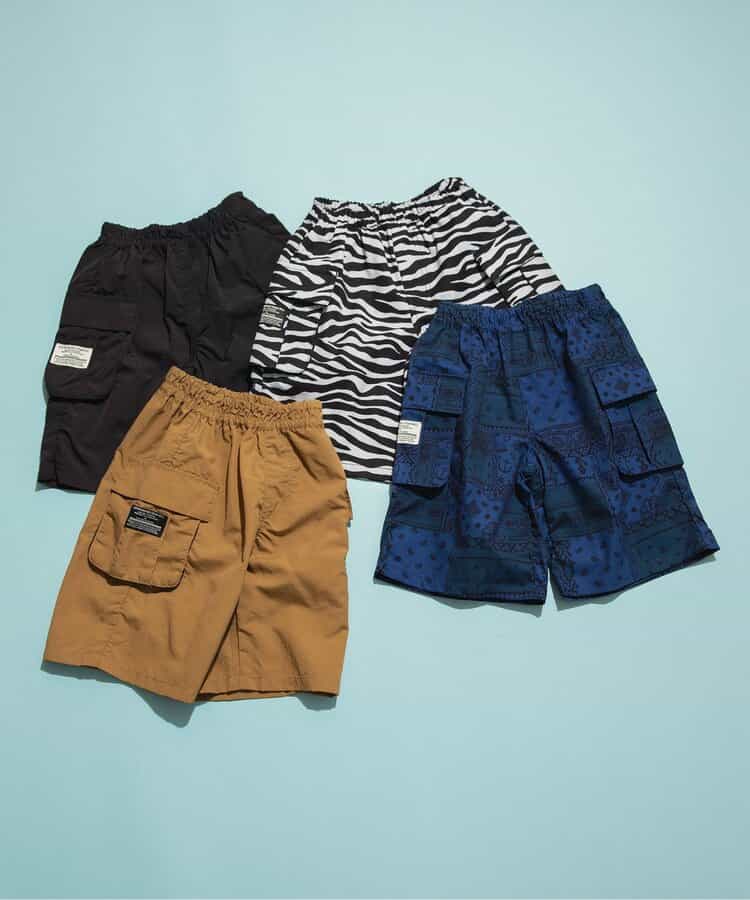 大きなポケットがポイントのカーゴパンツは、 『撥水加工』『UVカット』仕様の水陸両用アイテム♪ 楽しいお出かけが盛りだくさんな夏にぴったりなハーフパンツ★ どんなアイテムとも相性抜群な定番の無地デザインと、 コーデの主役になるペイズリー柄・ゼブラ柄。 短すぎず、しっかりとした丈感で、 Tシャツと合わせて今っぽいカジュアルコーデに◎ 160サイズまでの幅広いサイズ展開で、 キッズサイズを卒業したお子様にもおすすめです!
