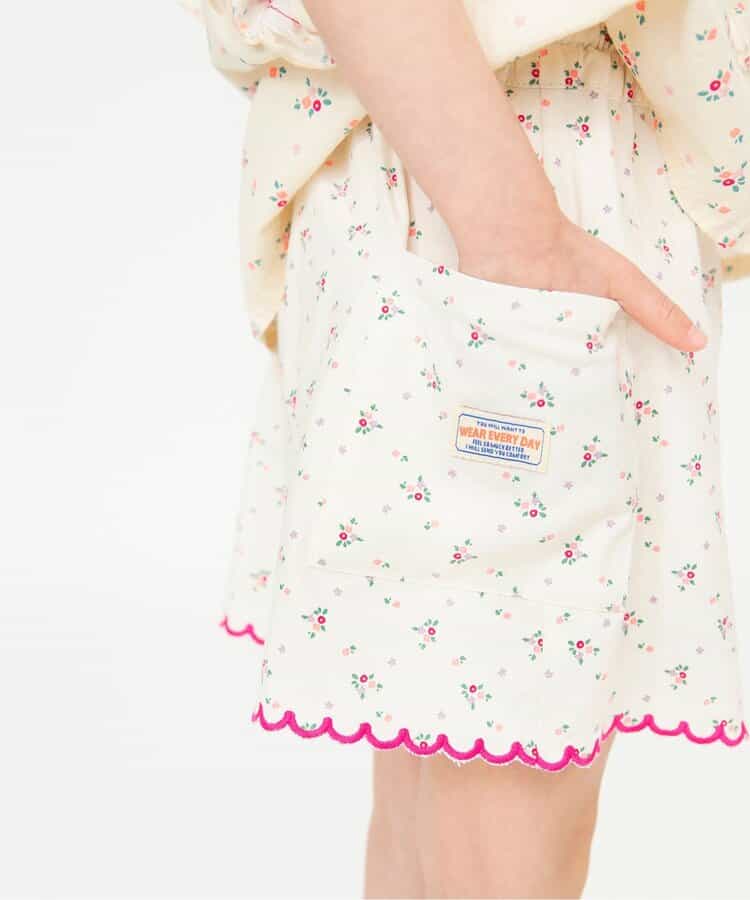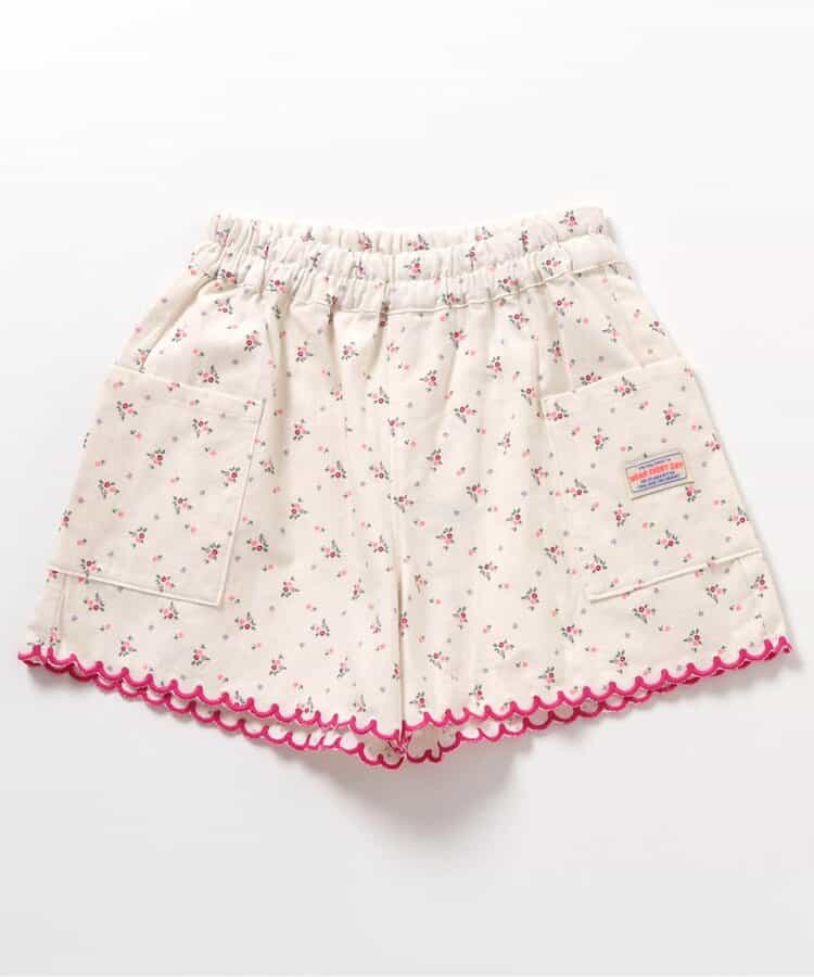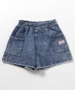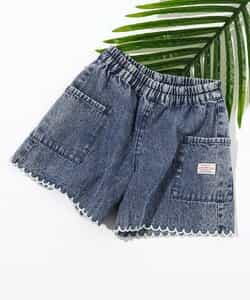 【4/24(金)21:00~販売】BREEZE(ブリーズ)のパンツ「スカラップショートパンツ」は、通園・通学にもおすすめな、おしゃれで動きやすいデザインが人気!<お取り扱いのご注意>この商品はユーズド感を出す為、製品洗い・製品染め・ブリーチ(脱色)・生地切れ・糸切れ等の2次加工を施しております。製品の特性上1枚ずつの加工となり、多少の歪み・シワ・色の出方・風合い・サイズ等1枚ごとに微妙に違います。尚、着用や洗濯を繰り返すことにより加工が徐々に進行し、あたり・ほつれなどが表れます。以上の点をご留意の上、他の製品では味わえない雰囲気をお楽しみ下さい。