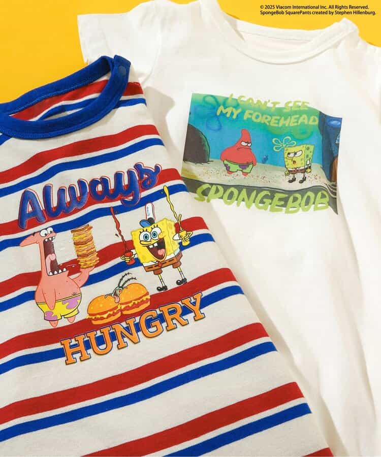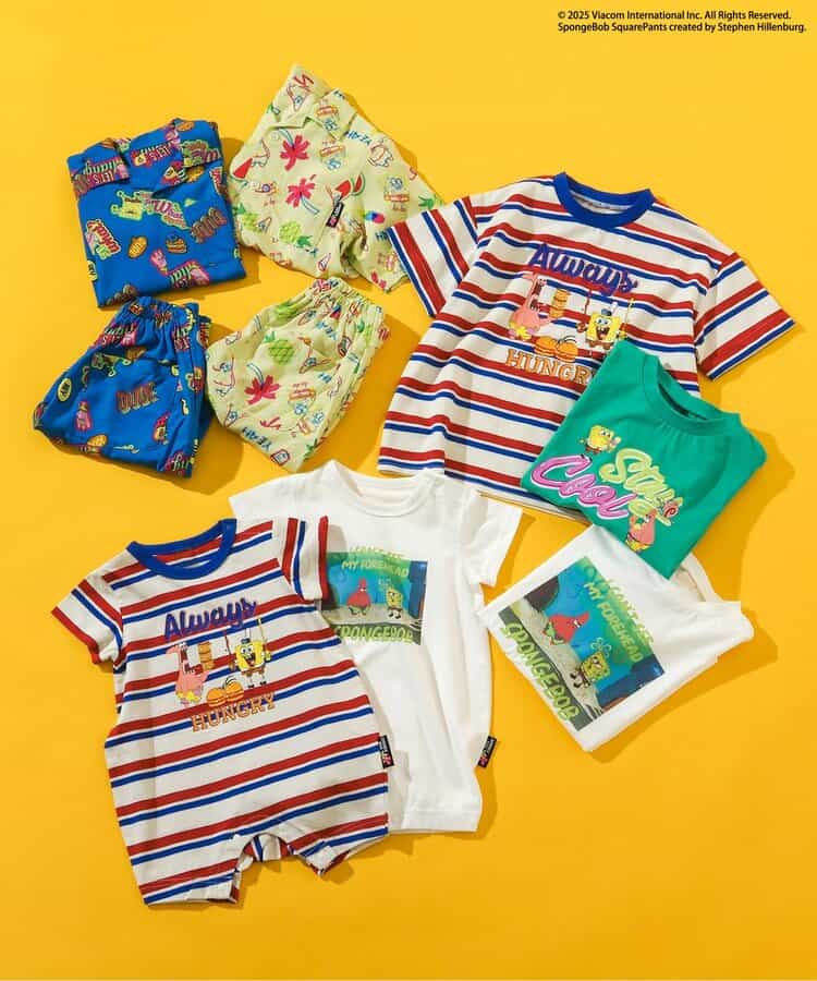 【5/13(火)21:00~販売】【スポンジ・ボブ】人気アニメキャラクター「スポンジ・ボブ」のアイテムがBREEZEから登場♪「スポンジ・ボブ」のユーモアで楽しい世界観の味わえるプリントに注目!着心地の良いロンパスは夏に大活躍◎お揃いのTシャツもご用意しました!きょうだいでリンクコーデを楽しんで♪