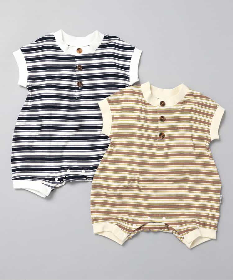【5/21(水)21:00~販売】BREEZE(ブリーズ)のカバーオール・ロンパース「【Bpop】マルチボーダーロンパス」は、小さいお洋服にこだわりを詰め込んだ大人顔負けのデザインが人気!出産祝いのギフトにもおすすめです♪