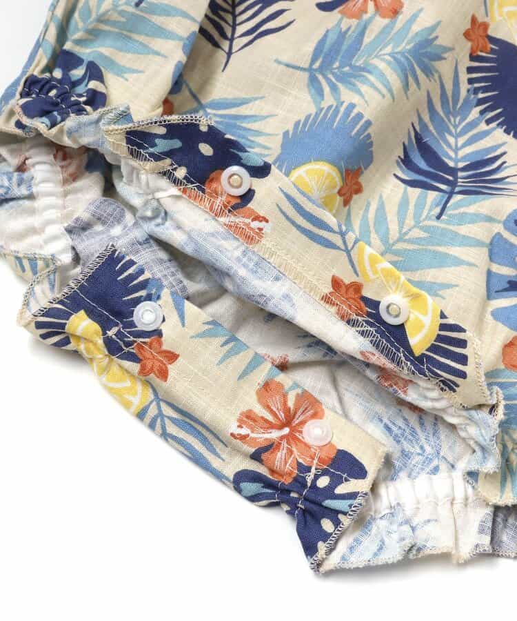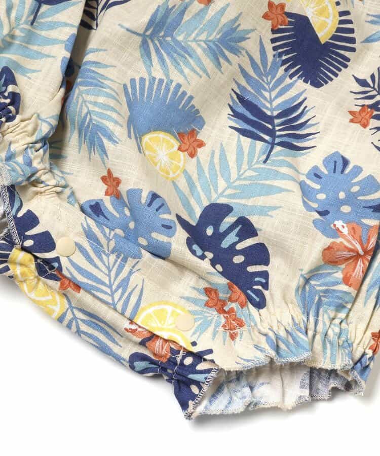 BREEZE(ブリーズ)のカバーオール・ロンパース「ボタニカル柄ボディーオール」は、手頃な価格とアメカジテイストを取り入れた大人顔負けのデザインが人気!出産祝いにもどうぞ!