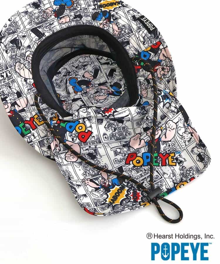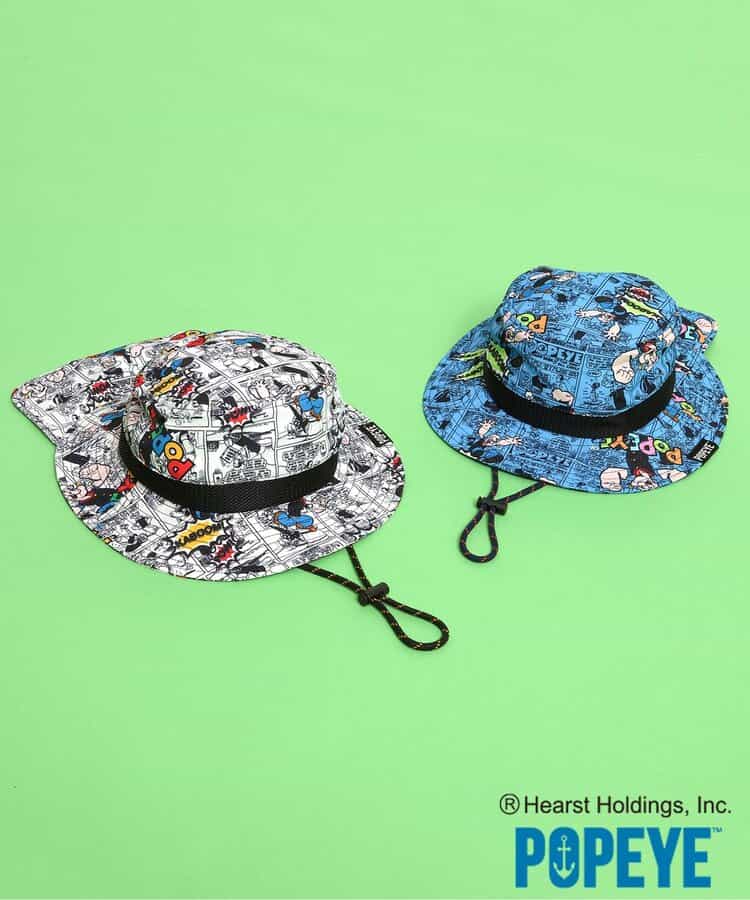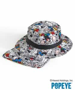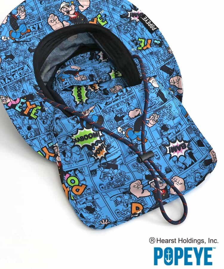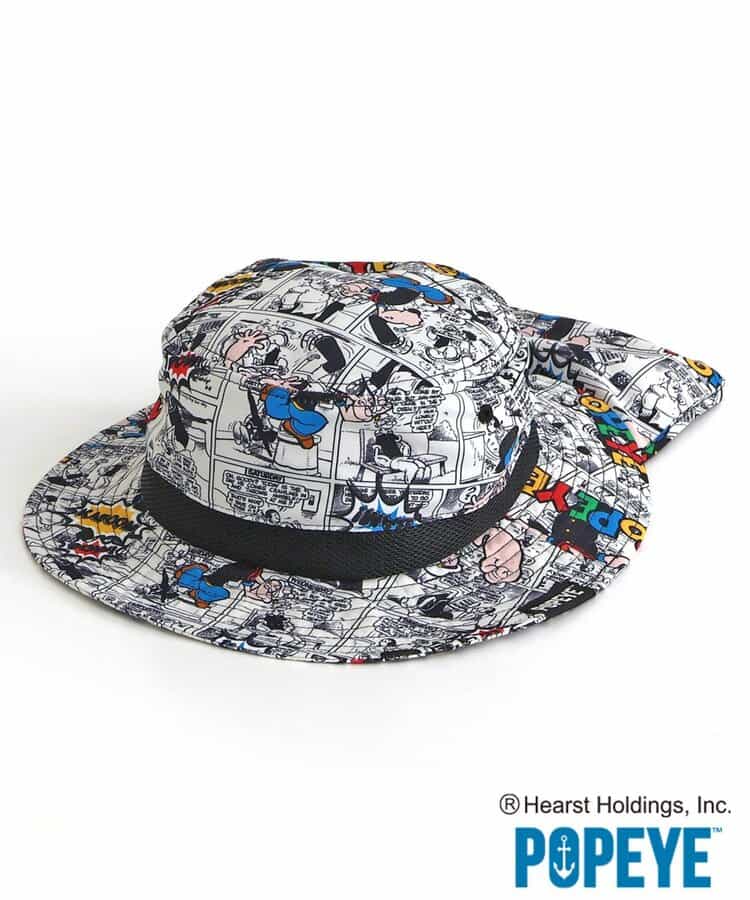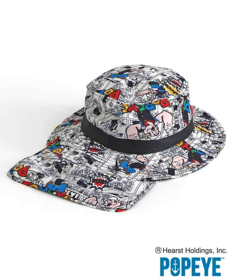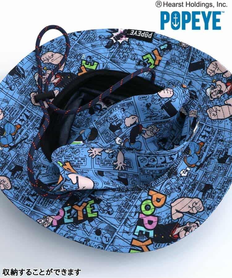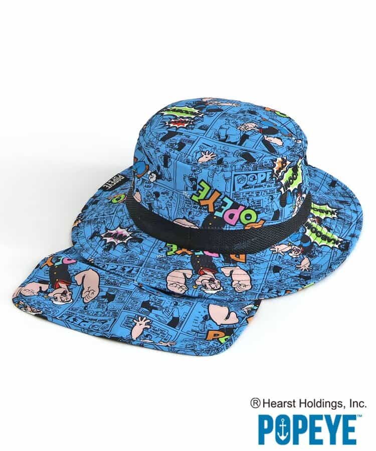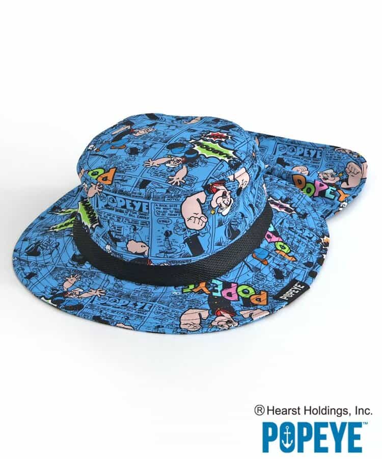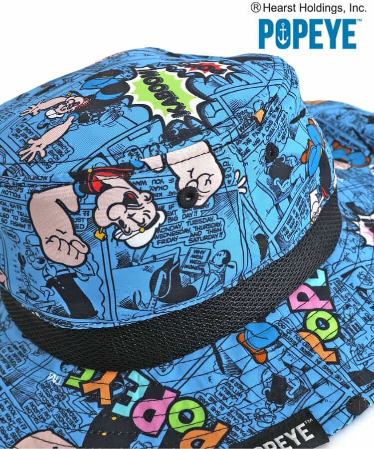 【 POPEYE(TM)】ほうれん草を食べると超人的なパワーを持つ!人気キャラクター「ポパイ(TM)」がBREEZEに初登場!夏のアウトドアに大活躍のアウトドアハット☆見ているだけでわくわく♪コミックを抜き出したようなデザインがポイント◎コミック総柄アウトドアハットとは同じデザインなので、合わせてリンクコーデもおすすめ!