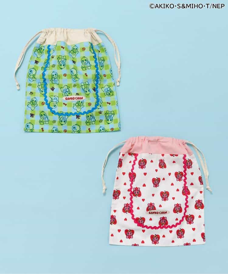 【ざわざわ森のがんこちゃん】「ざわざわ森のがんこちゃん」デザインの巾着♪明るいカラーと、がんこちゃん、がんぺーちゃんのデザインがとってもキュート♪ママもいっしょに使える巾着♪プレゼントにもおすすめです◎