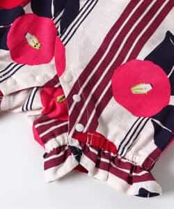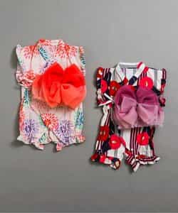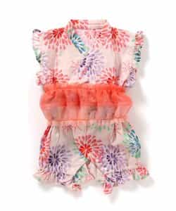 【 BREEZE(ブリーズ) ‐ 浴衣甚平 2025 】大きな総柄に、フリルデザインが目を惹くベビー甚平♪女児のキッズ浴衣甚平と、同じ絵柄なのでおそろいコーデも楽しめます◎J375915【すっぽり着られる】フリル甚平 >>J375925【すっぽり着られる】Girls浴衣 >> サラッと着られて、すずしく動きやすい甚平は花火大会や夏祭りなどの、夏レジャーはもちろん!ちょっとしたお出かけやお家での部屋着としてもおすすめです♪ <お取り扱いのご注意>この商品は、素材感と肌当たりを重視し柔らかい風合いのデリケートな生地を使用しております。次のことにご留意の上、お買い求め下さい。○激しい運動や無理な力が加わることにより、縫い目が開いたり、織り糸が滑って織り目が開くことがあります。 ・過度な力がかからない様に着用、着脱の際には十分ご注意下さい。 ・柔軟剤のご使用はお避け下さい。○はげしい摩擦や引っ掛けで糸引けが起こることがあります。ベルトやかばんなどでの引っ掛けには十分ご注意下さい。