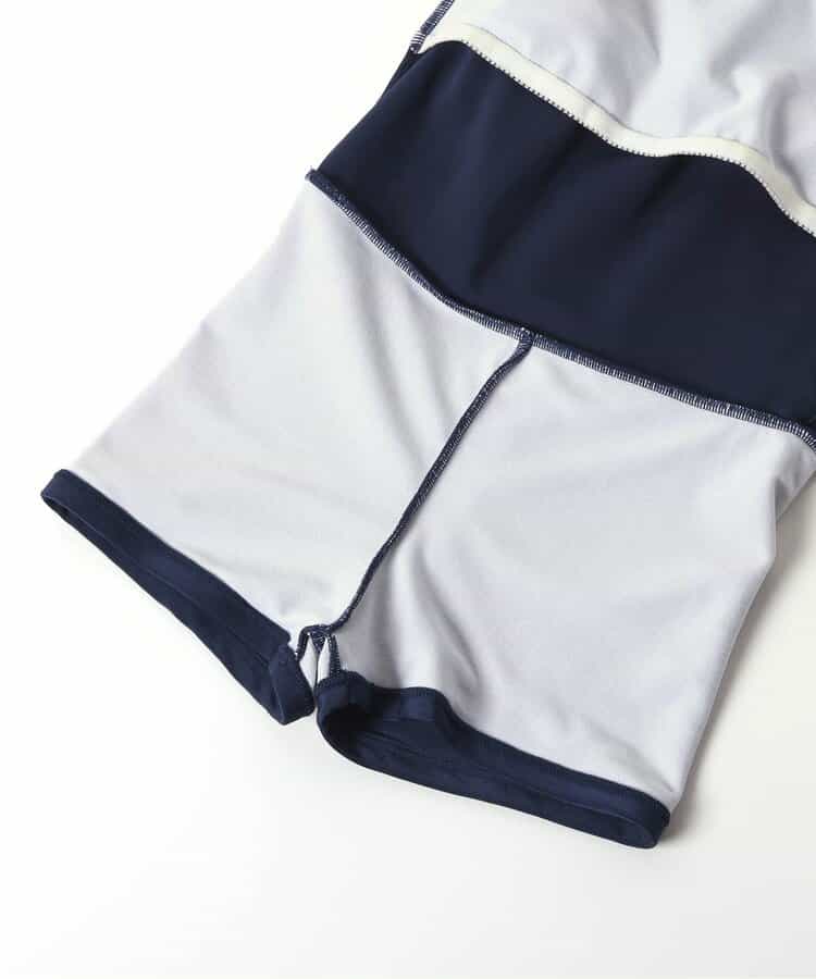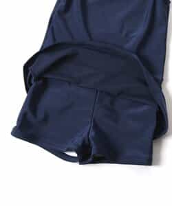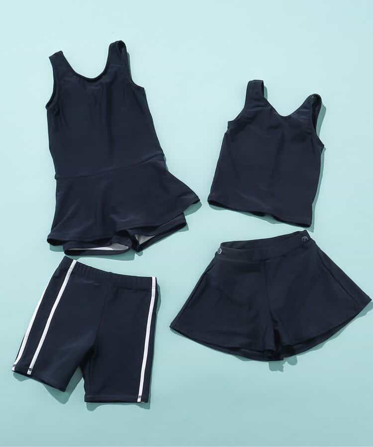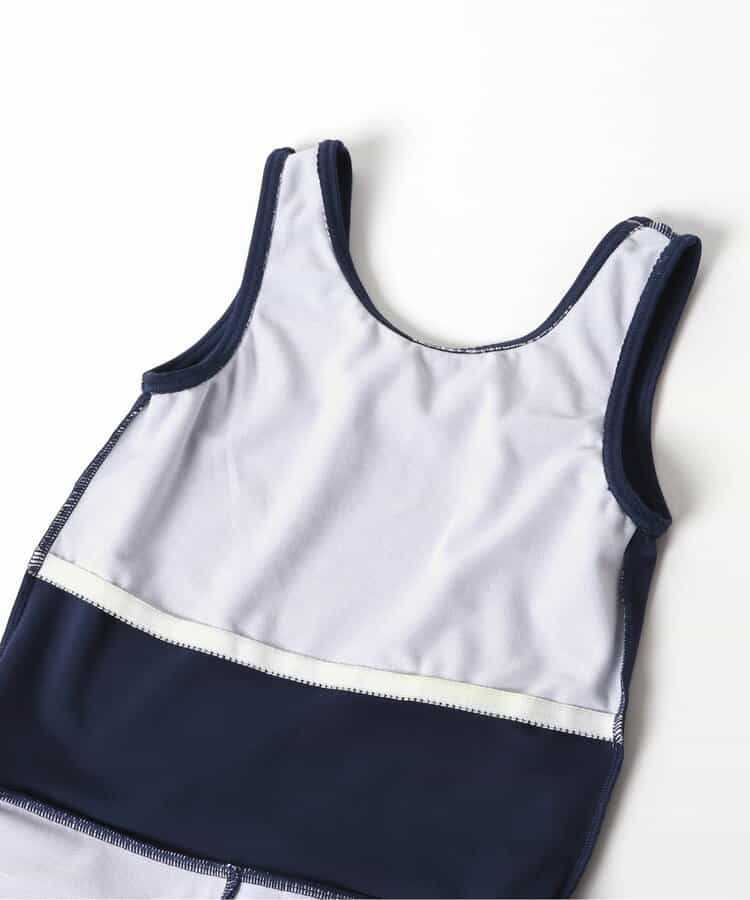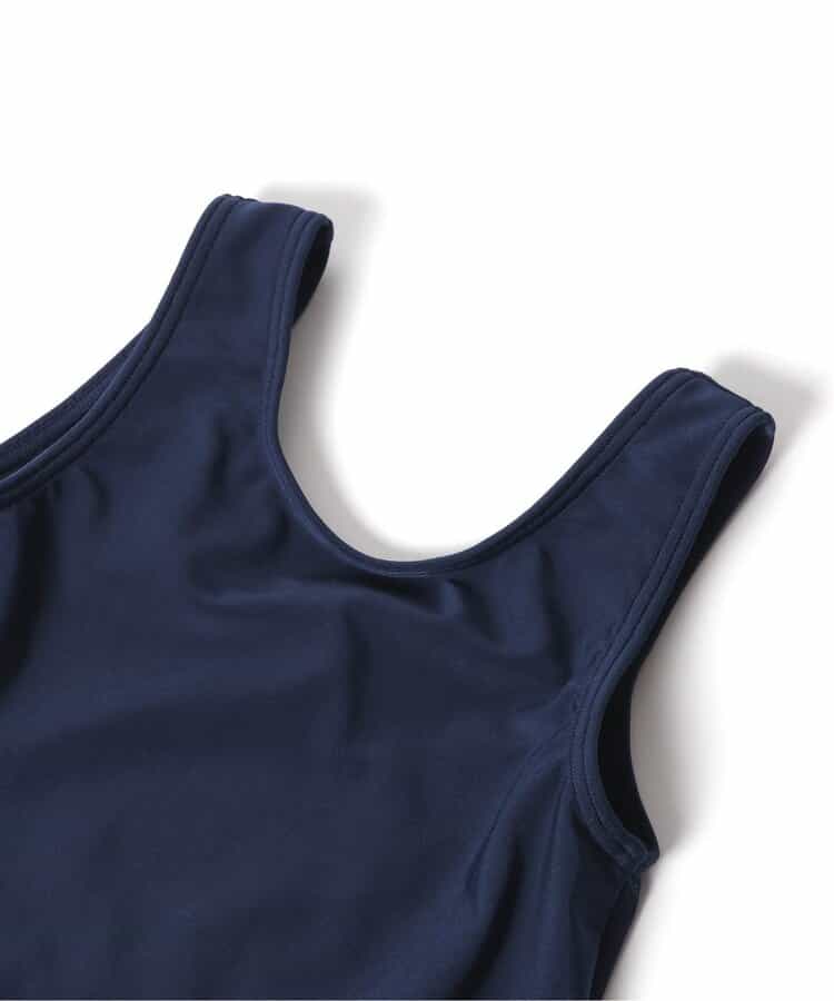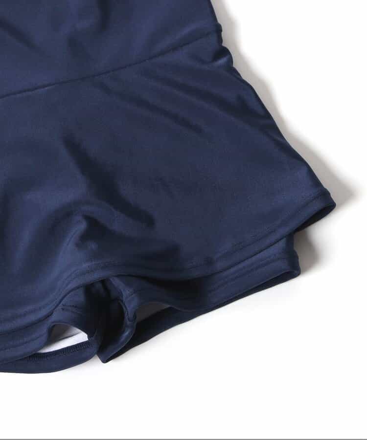 BREEZEのスクール水着★無地のネイビーカラーで、シンプルで着やすいワンピースデザインに♪スカート内側のボトム部分は、短め丈のインパンツ仕様になっています◎着脱のしやすさと、着心地の良さを実現するために、軽くて履きやすい2WAYストレッチの生地を採用しました。胸部の内側はメッシュ生地の2重仕立てで、市販のパッドが入れられるポケットも付き◎通園通学にもうれしいお名前ネーム付き◎<お取り扱いのご注意>こちらの商品はUV加工(紫外線遮蔽率90%以上)が施されております。